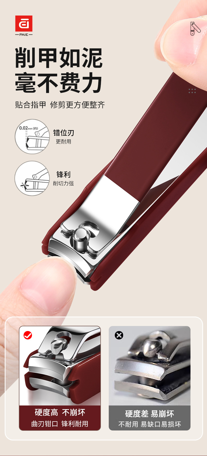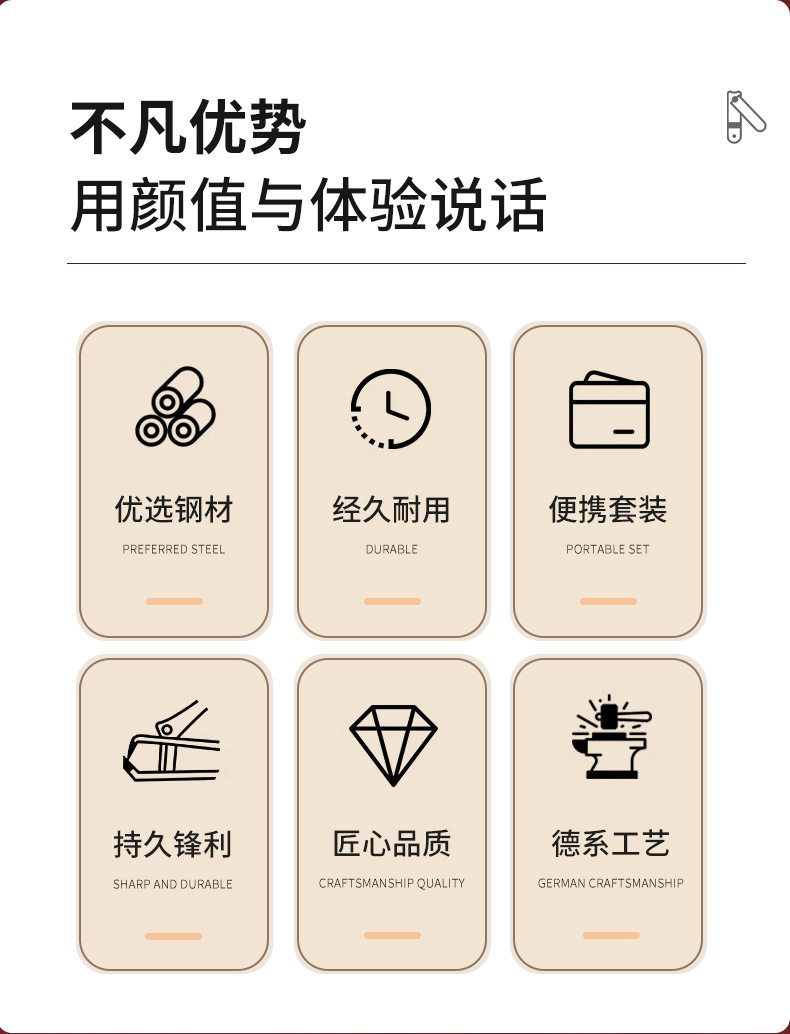 baiqi nail clippers 6-piece set-brown plastic box