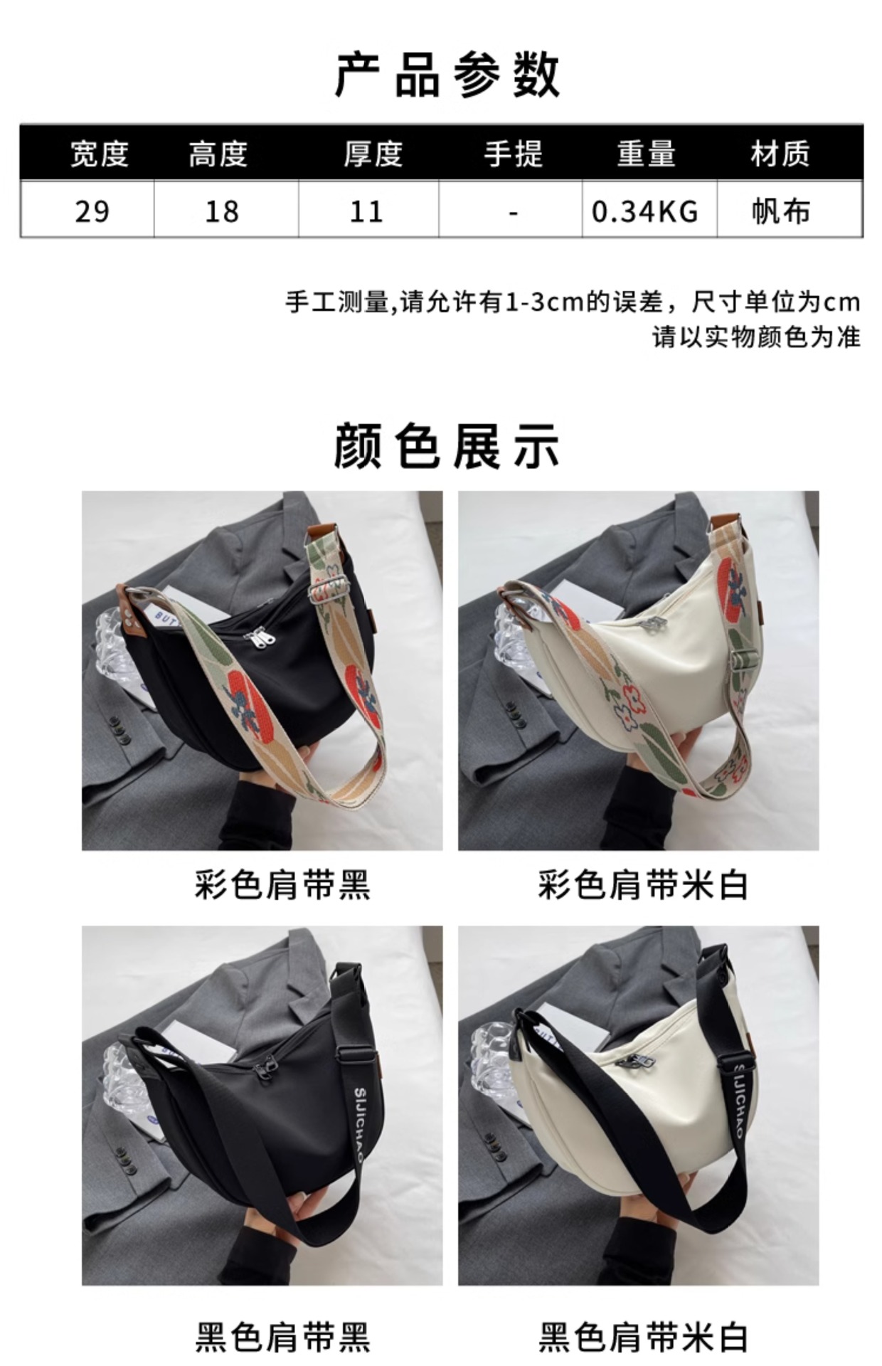 black shoulder strap, off-white