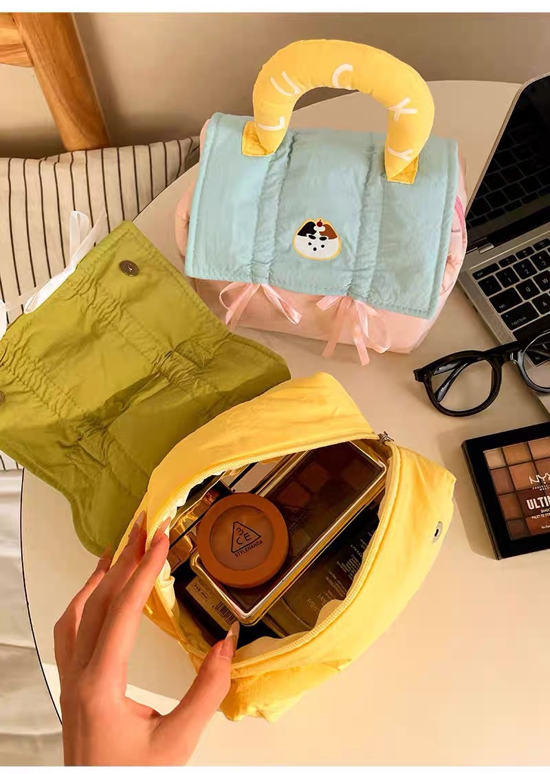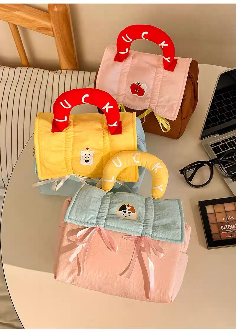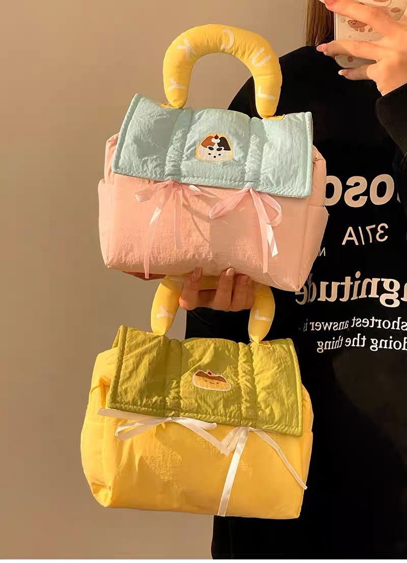 yellow stitched with blue