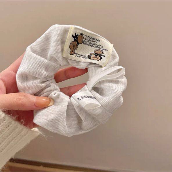 5# black and white lattice pattern little bear logo lace edge hair tie about 12.5cm