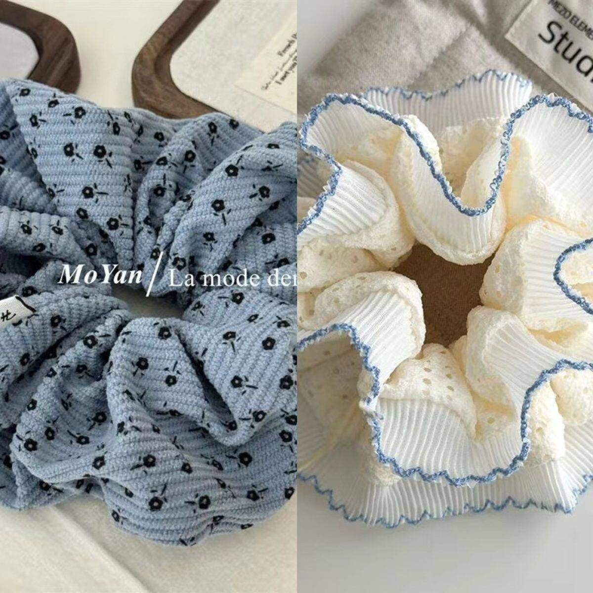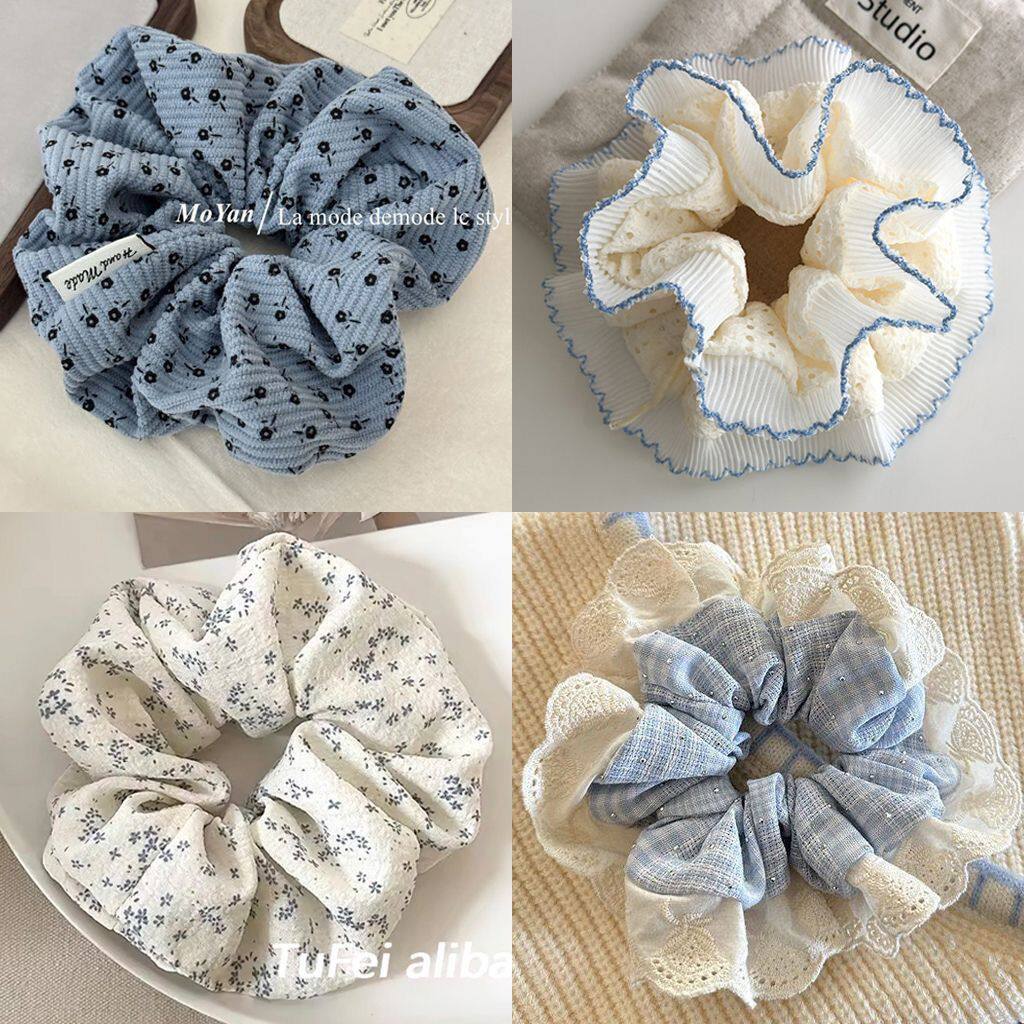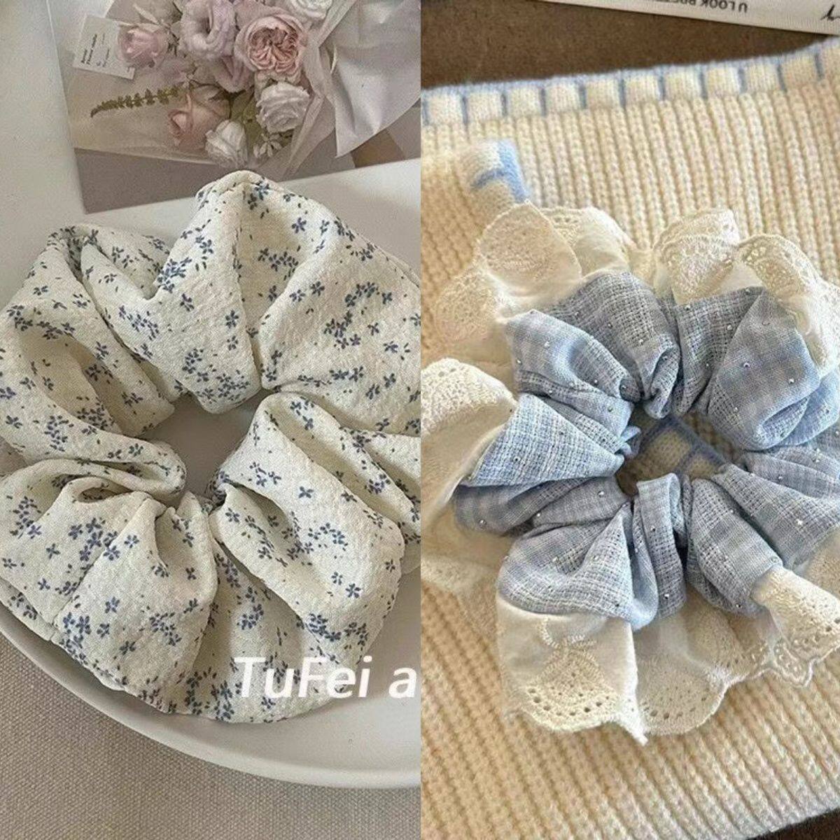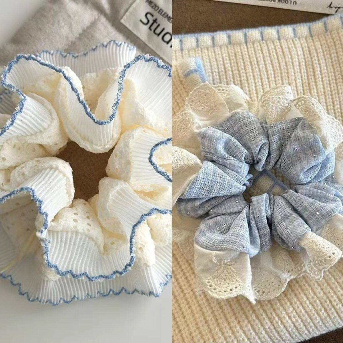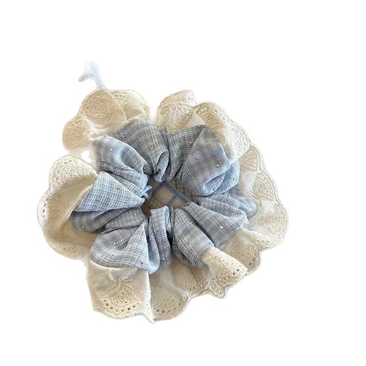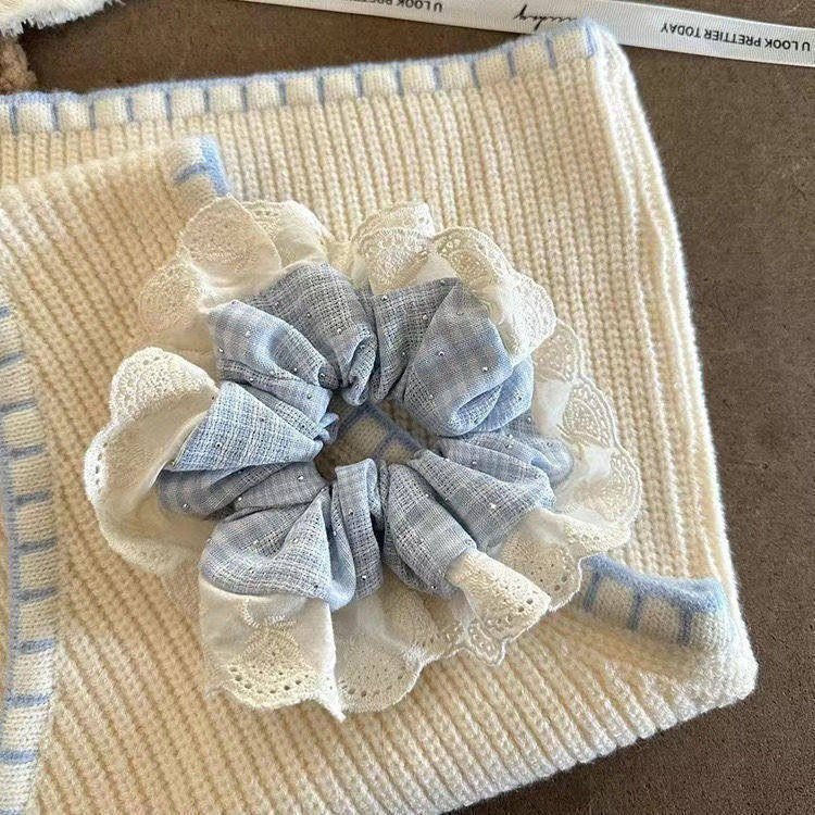 1# blue plaid diamond in the debris lace edge hair ring about 13cm