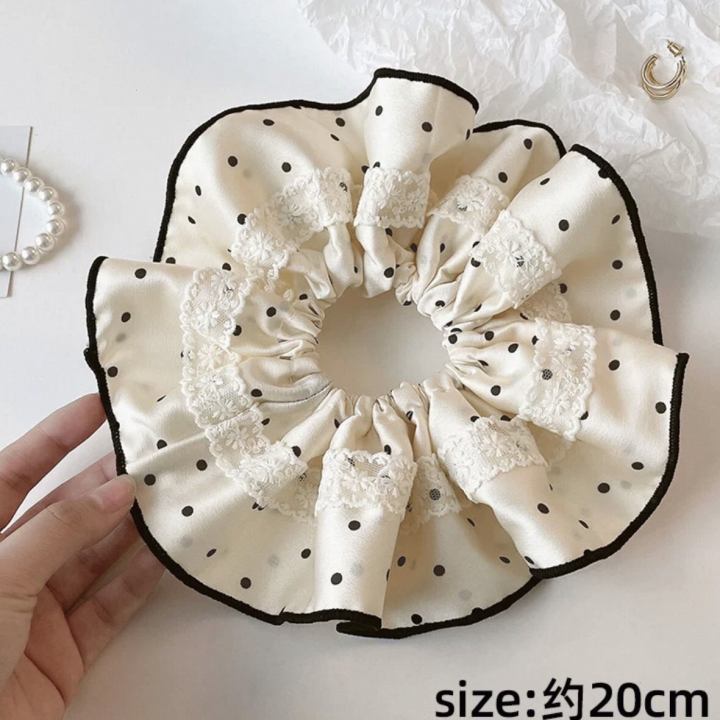 24# black polka dot lace trim hair tie about 14cm