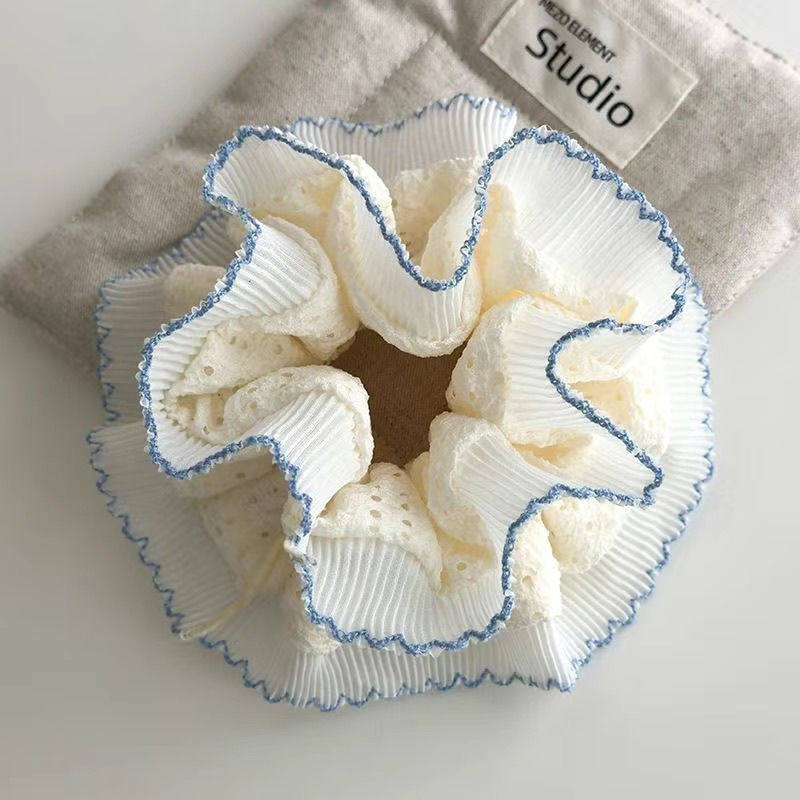 21# pure white spliced lace trim four-layer hair tie approximately 17cm