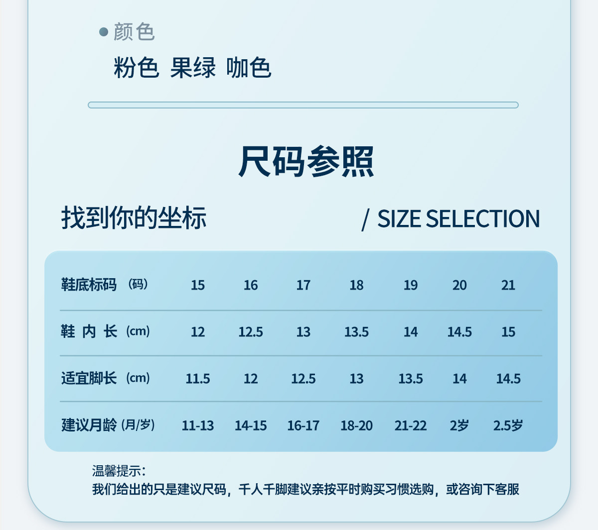 | size 15 has an insole length of 12cm and is suitable for a foot length of 11.5 cm. | CN¥ 0.0 |