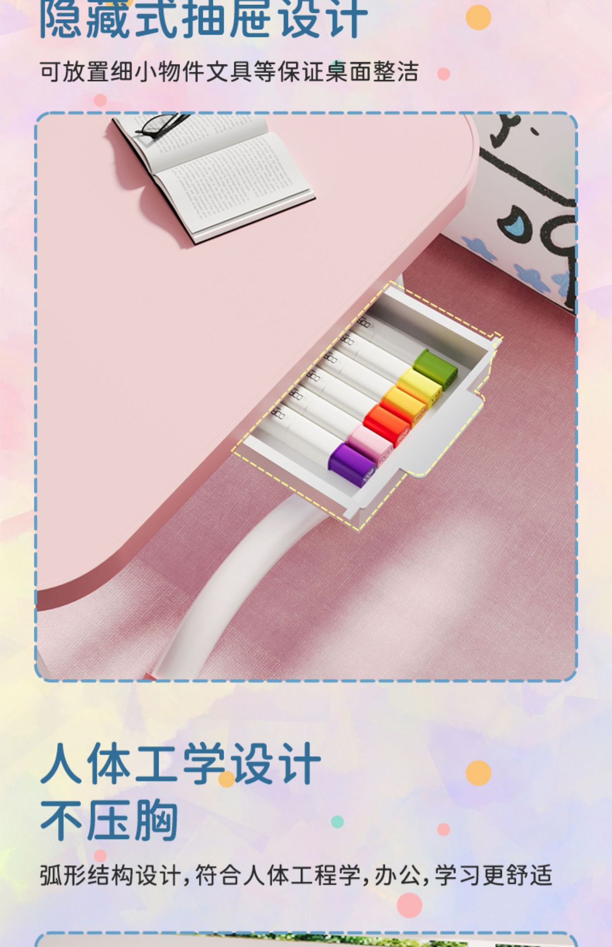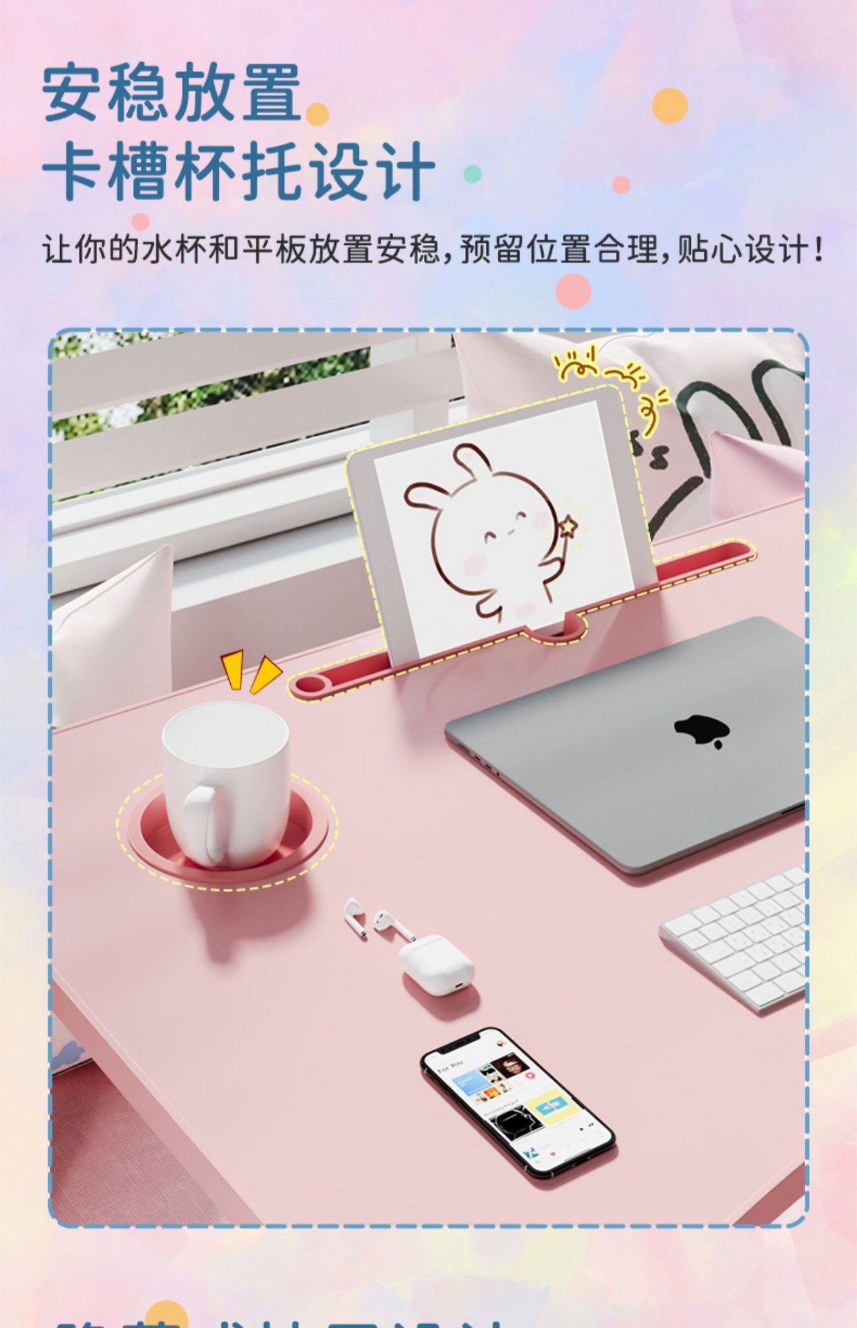 w arc (cup slot) pink + drawer pink non-slip