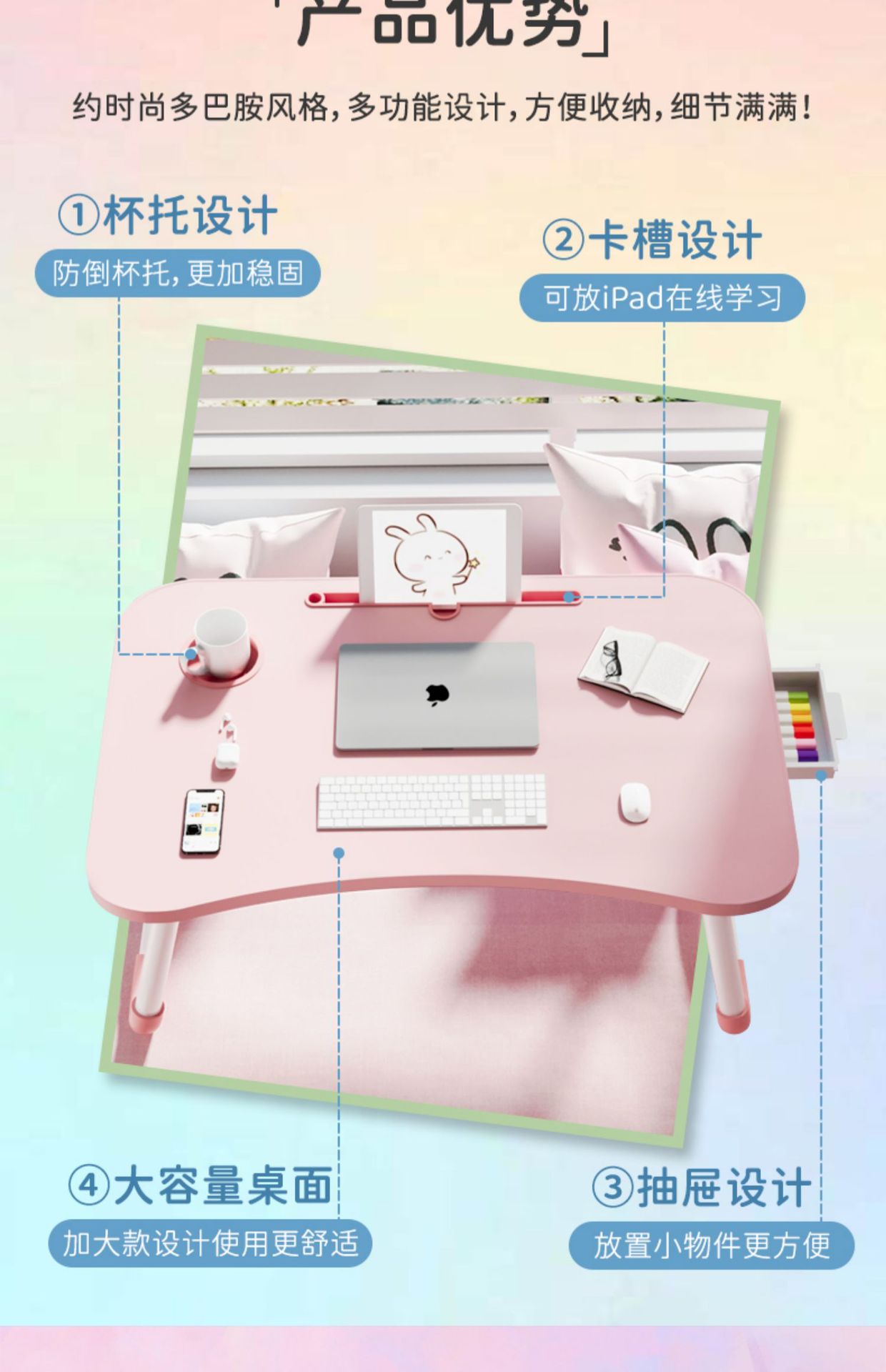 oversized w arc (cup slot) pink + drawer pink non-slip