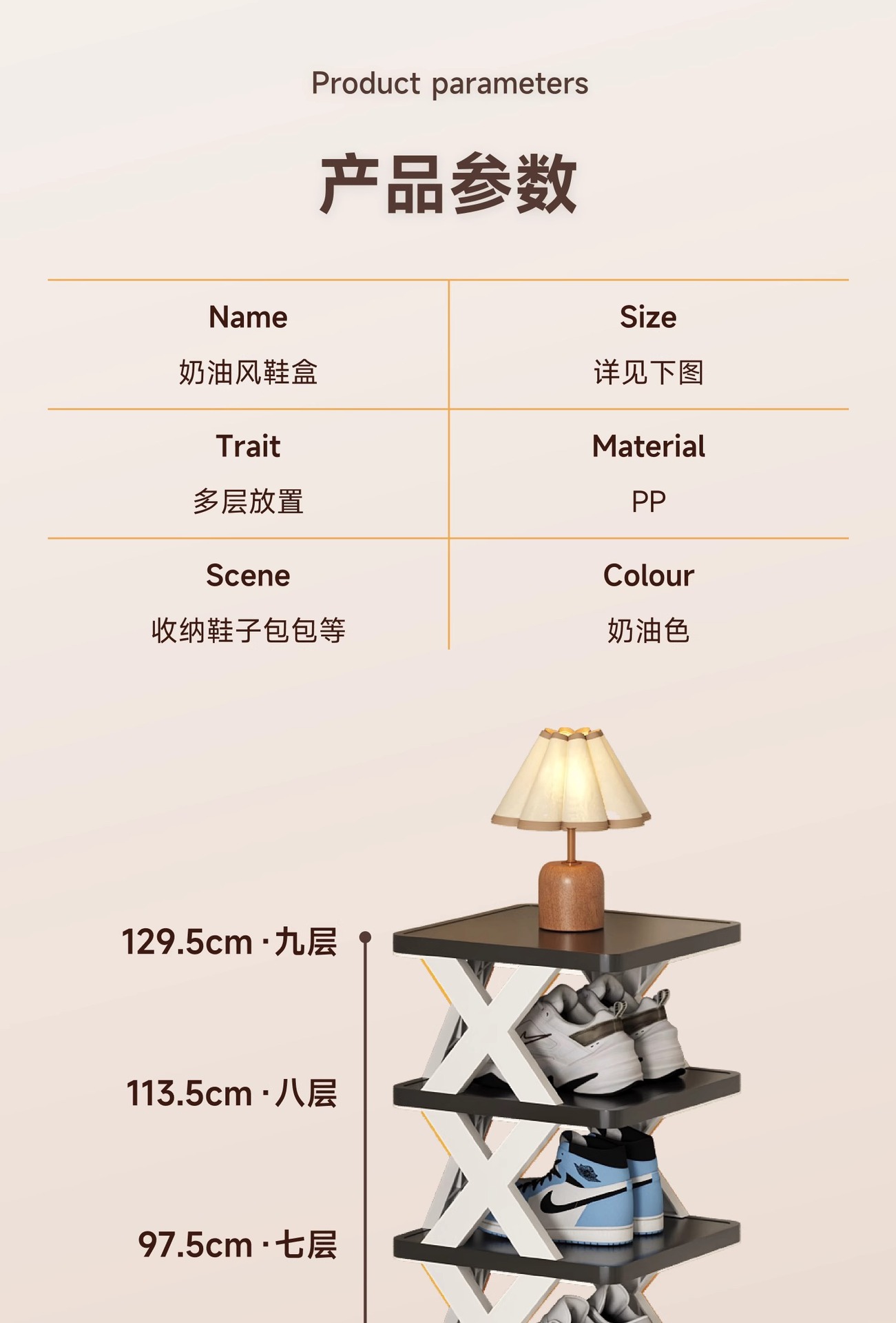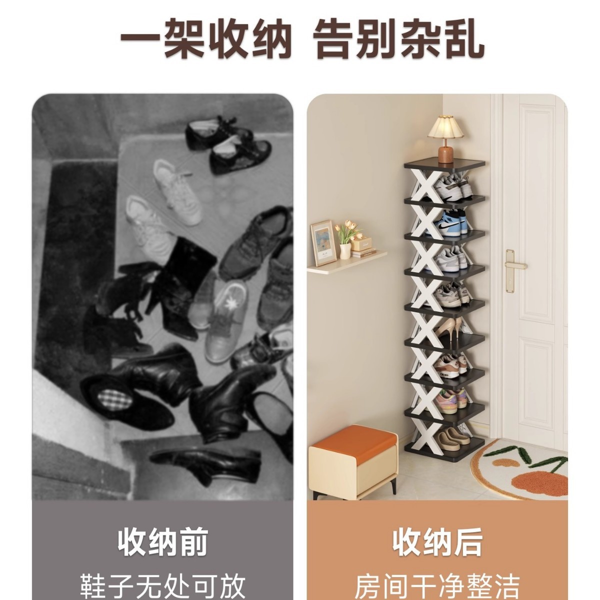 x-shape shoe rack-orange-9 tiers