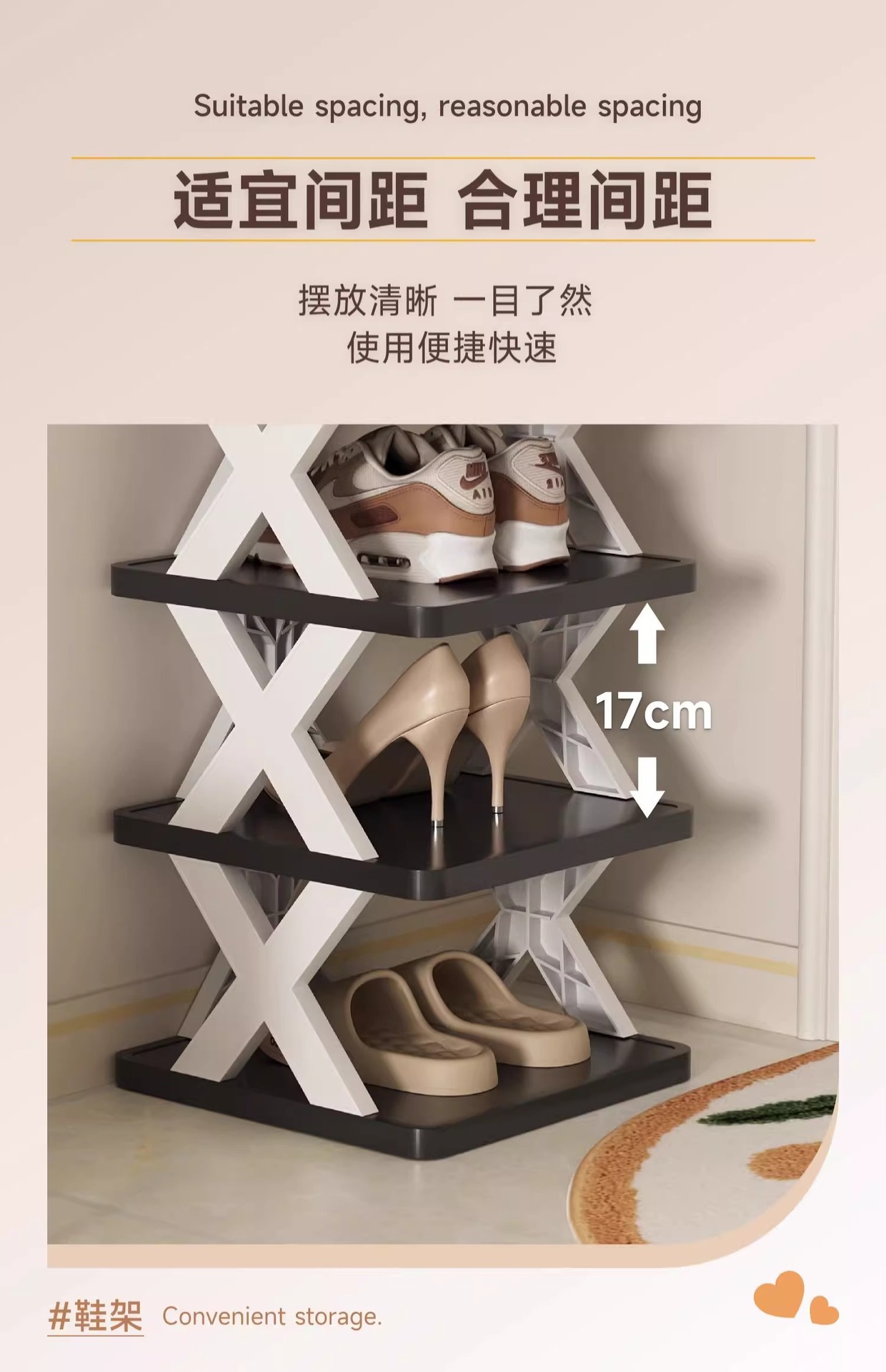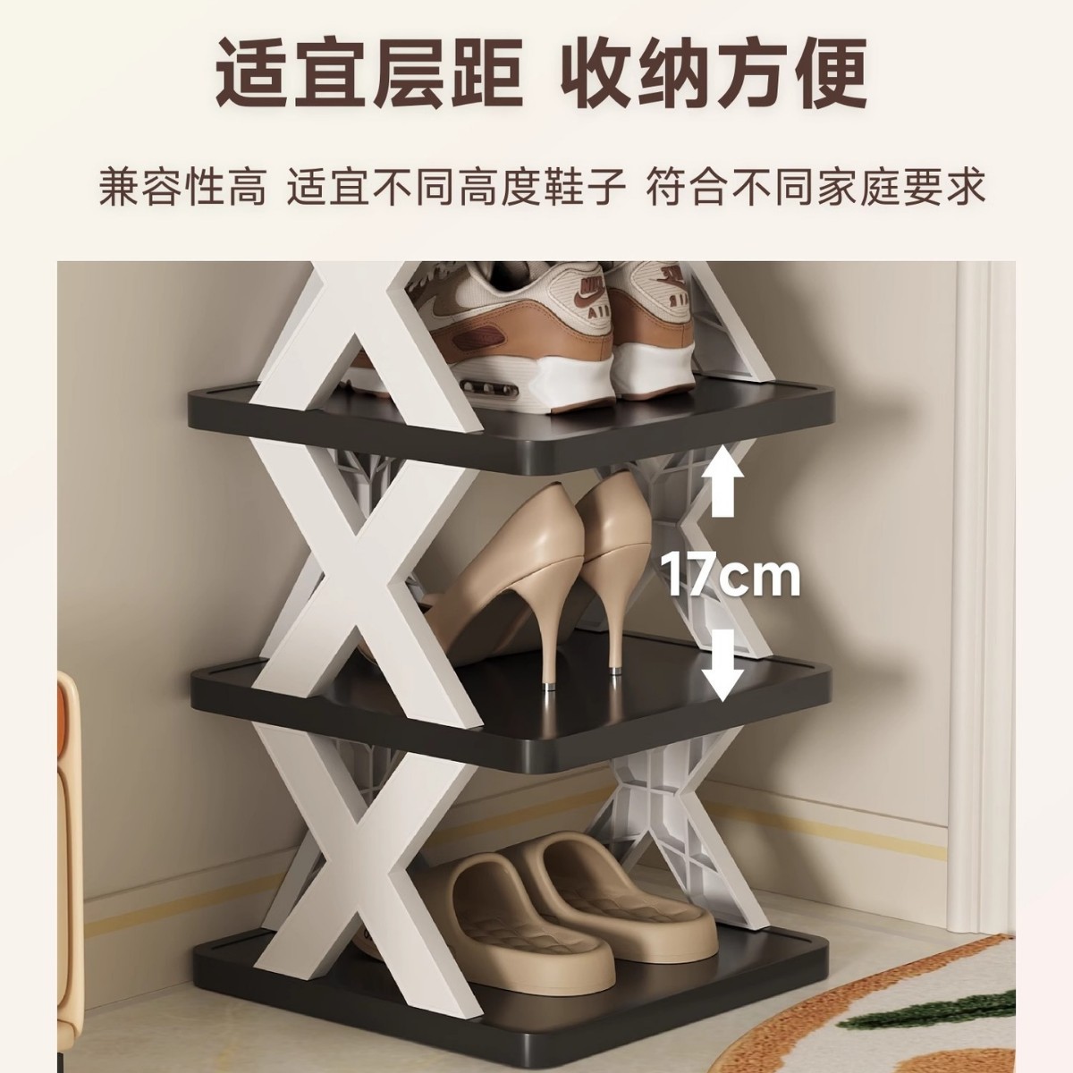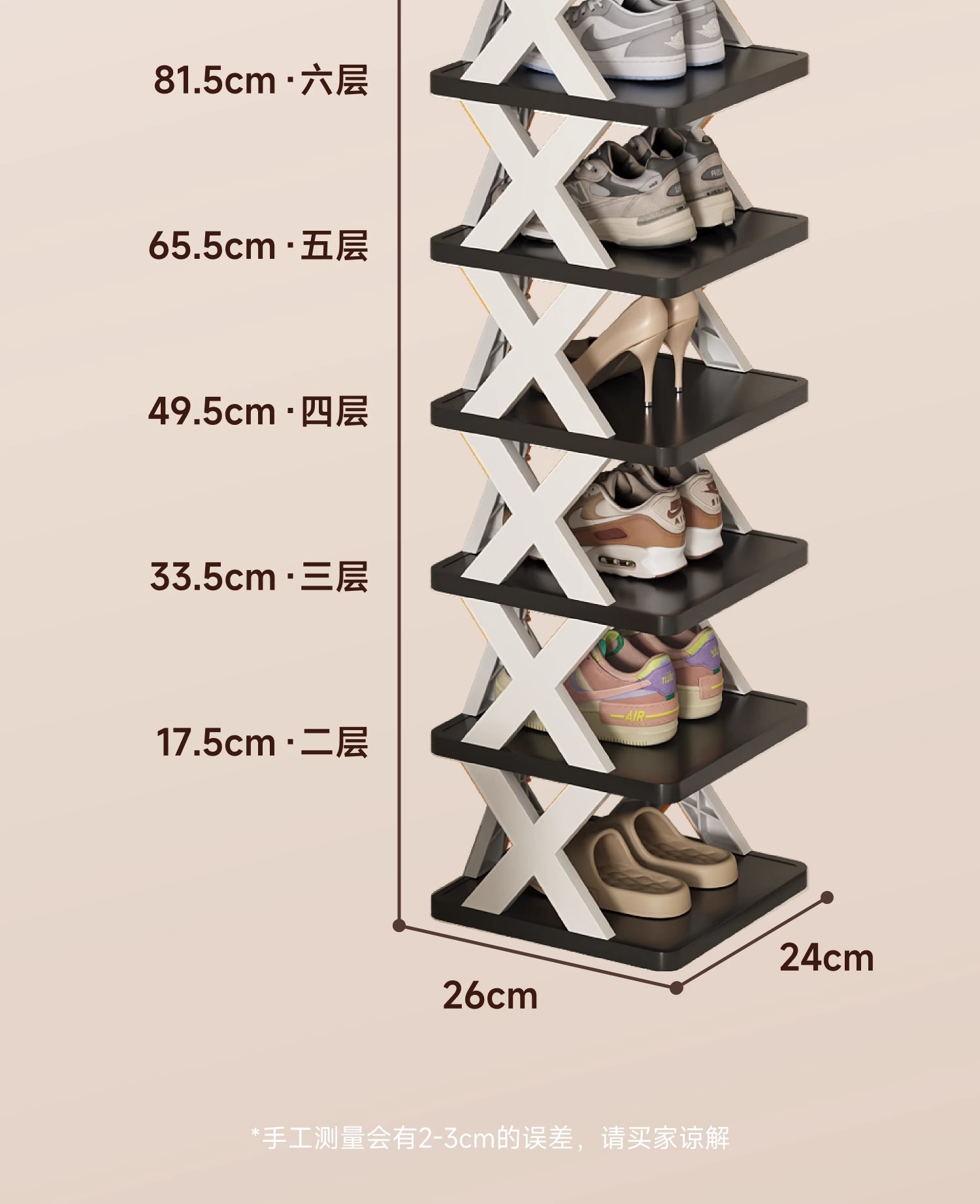 x-shaped shoe rack-all black-6 layers