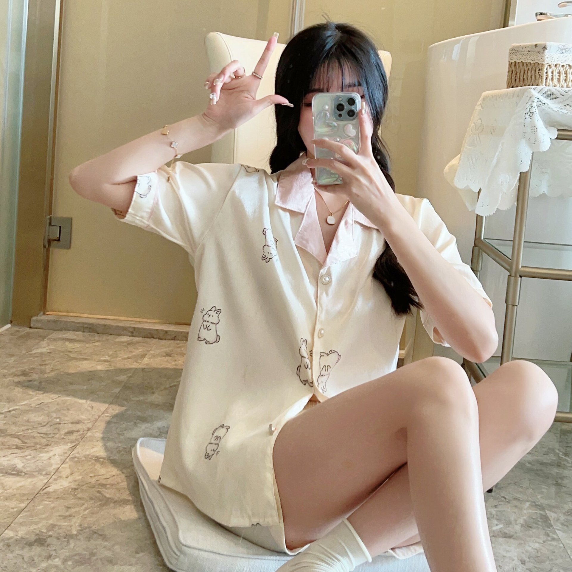 color: jacquard white dog double short, jacquard white rabbit double short same rabbit pattern