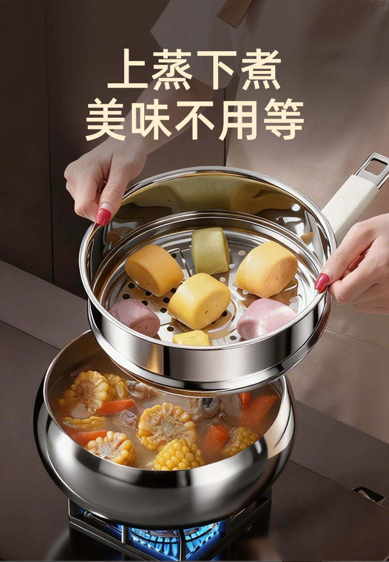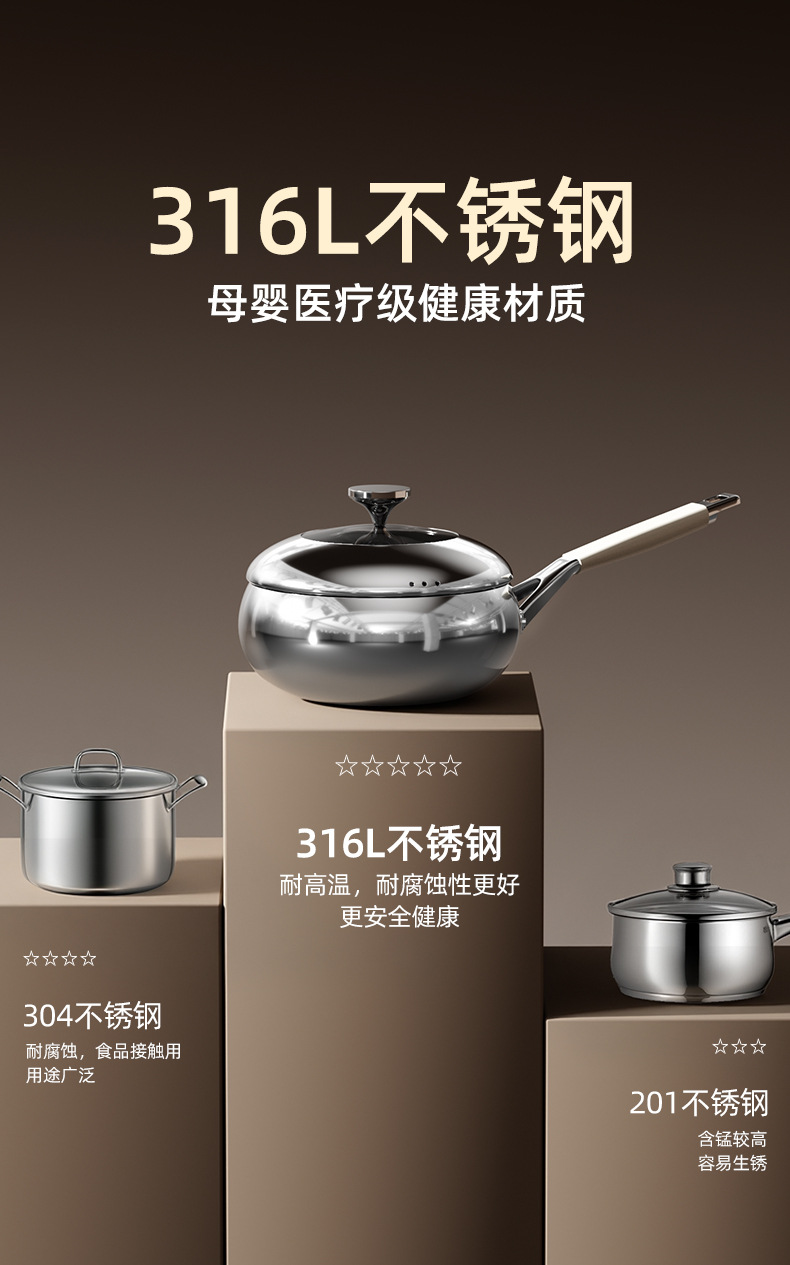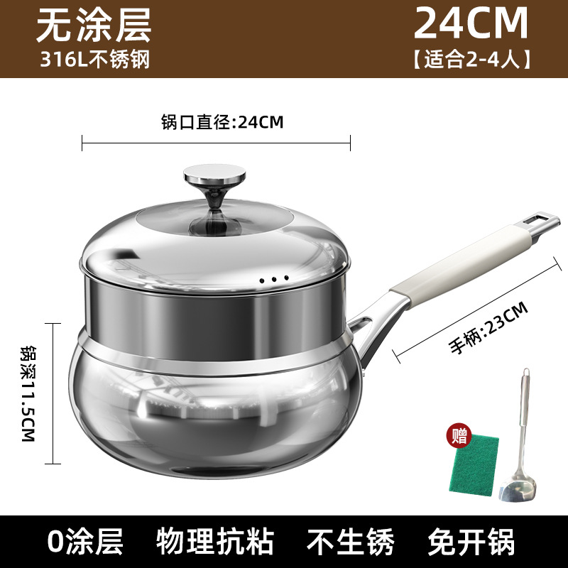 26cm with lid + steamer [316l stainless steel, 0 coating, non-stick]