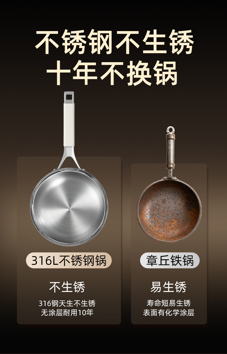 26cm with lid [316l stainless steel, no coating, non-stick]