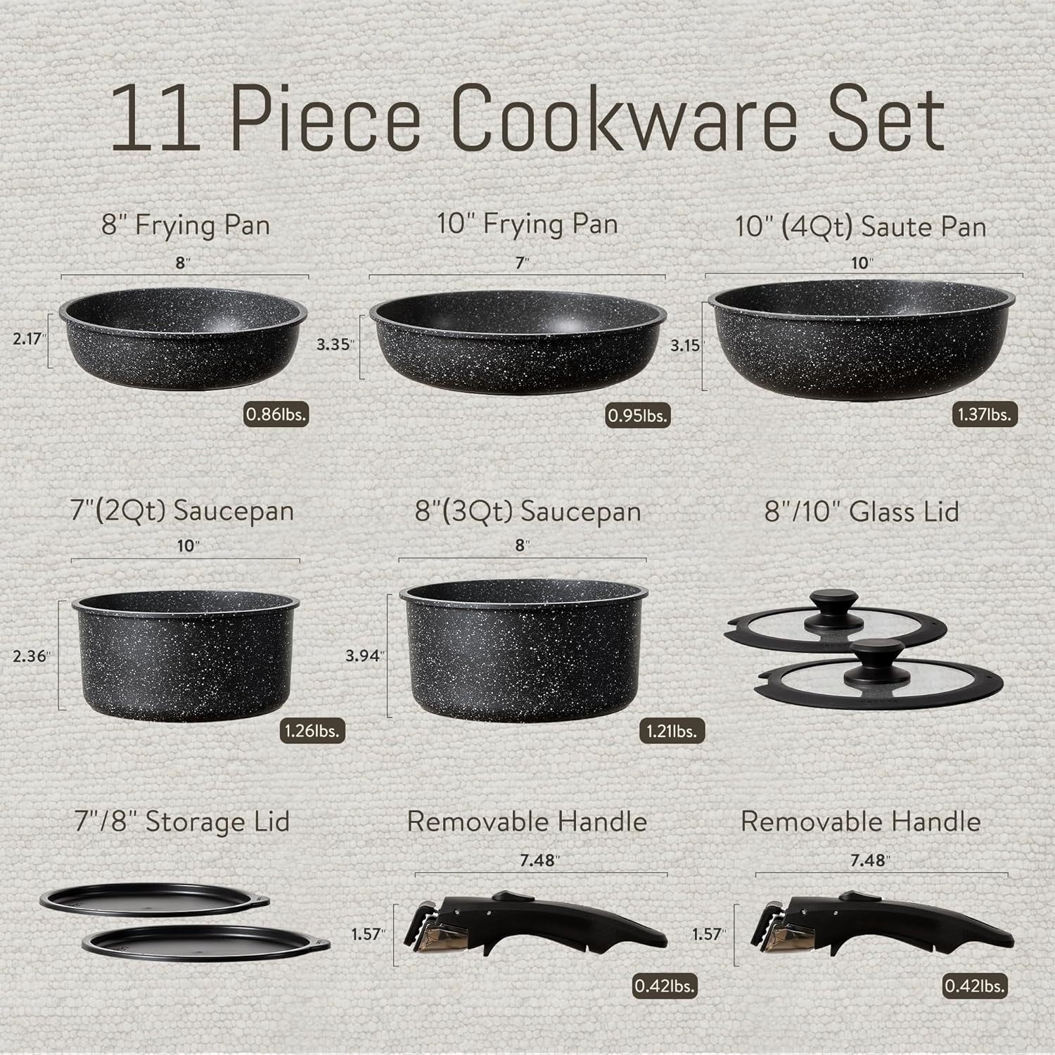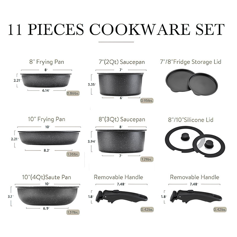 black, 12-piece set with detachable handles