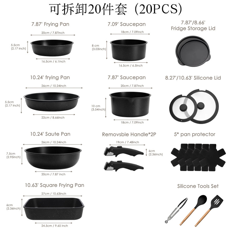 black 20-piece set with detachable handles