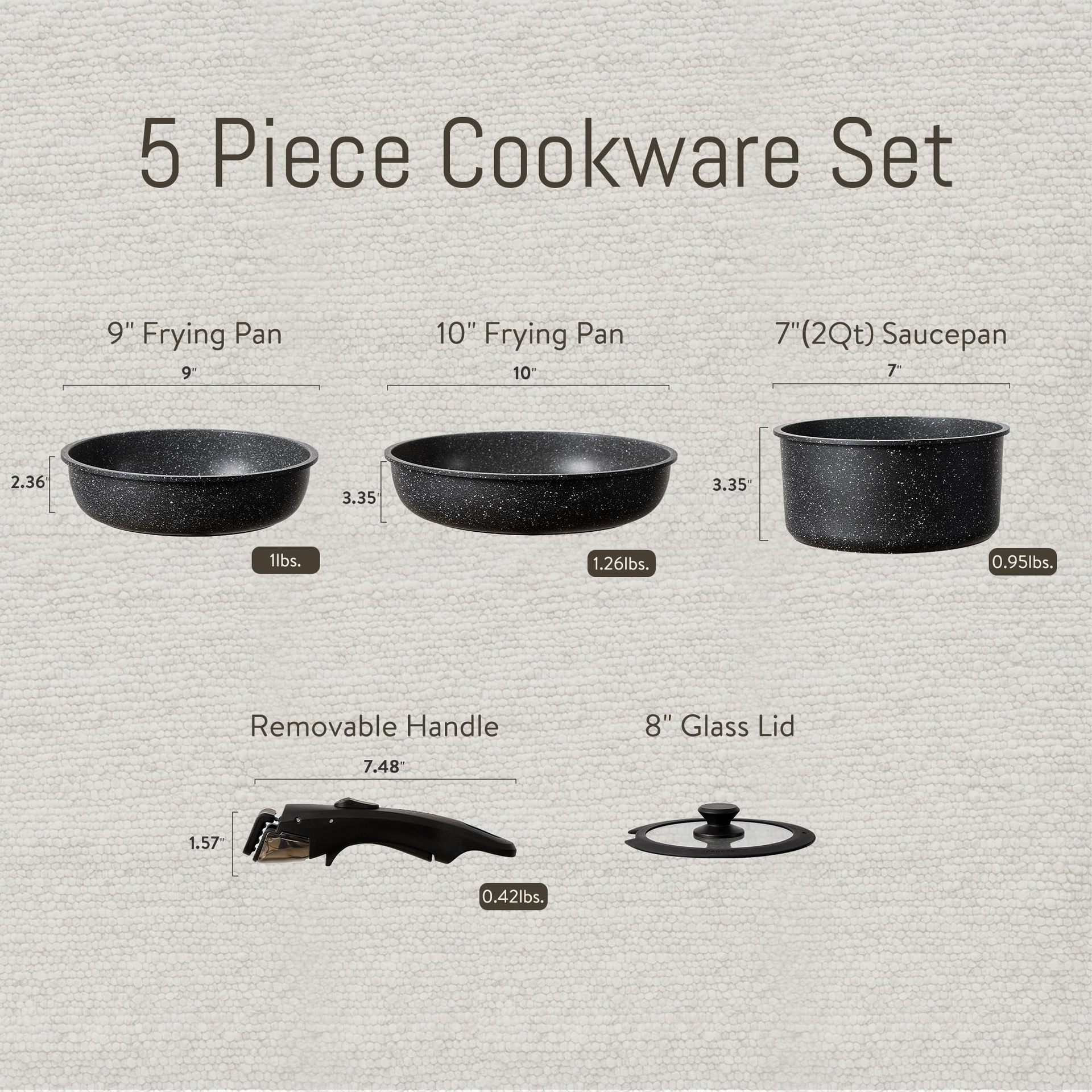 black 5-piece set with detachable handles