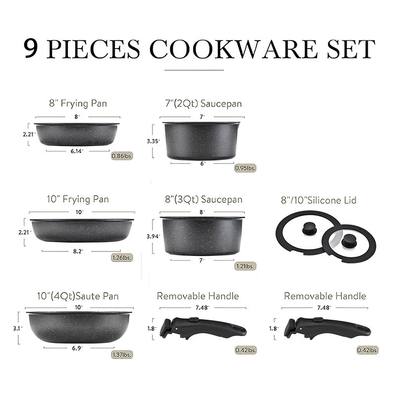 black 9-piece set with detachable handle