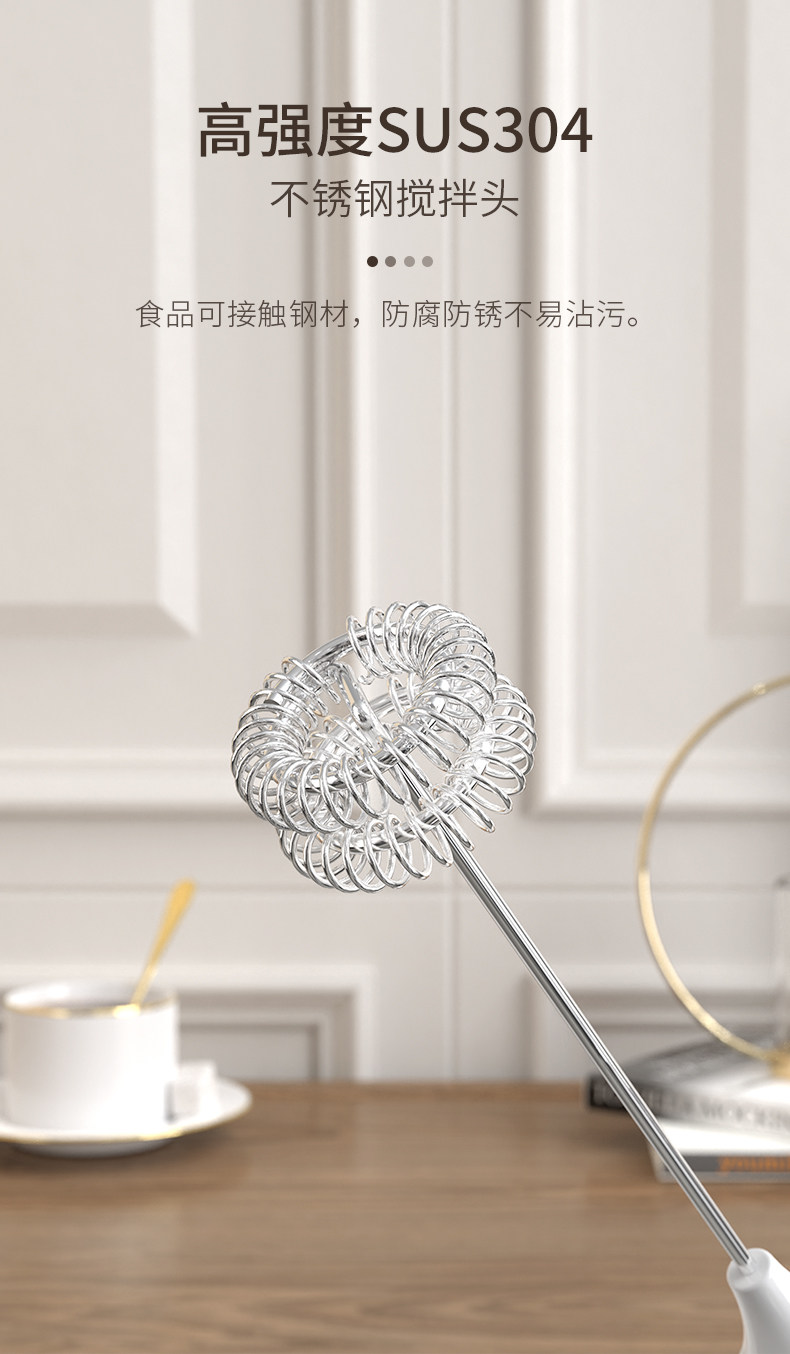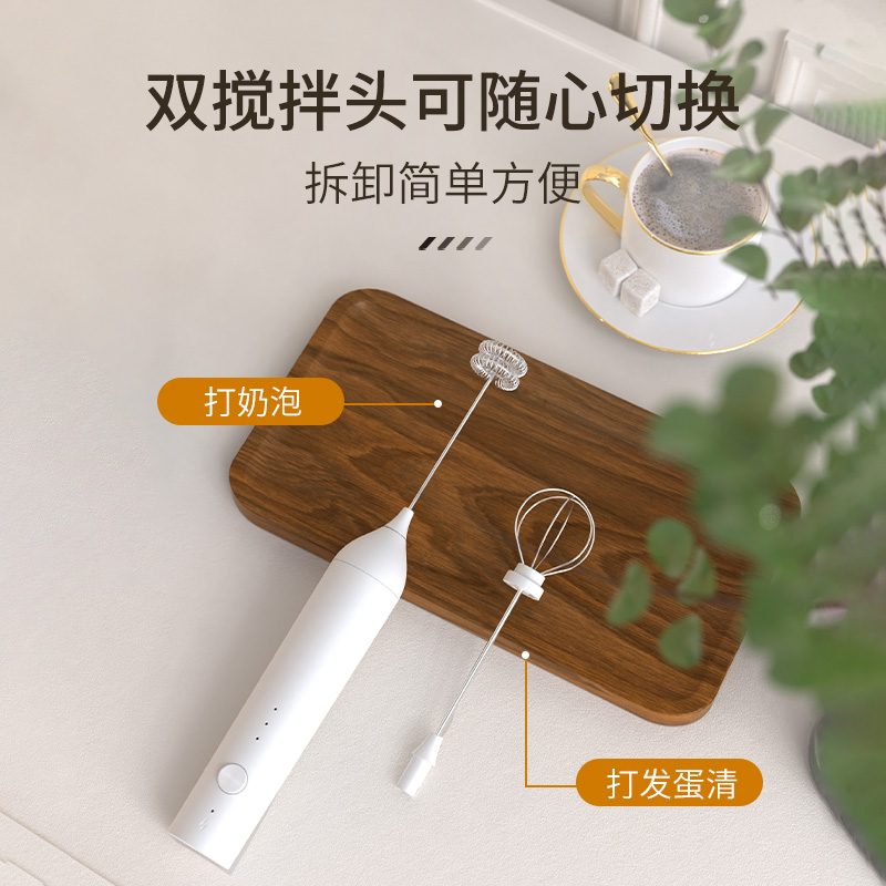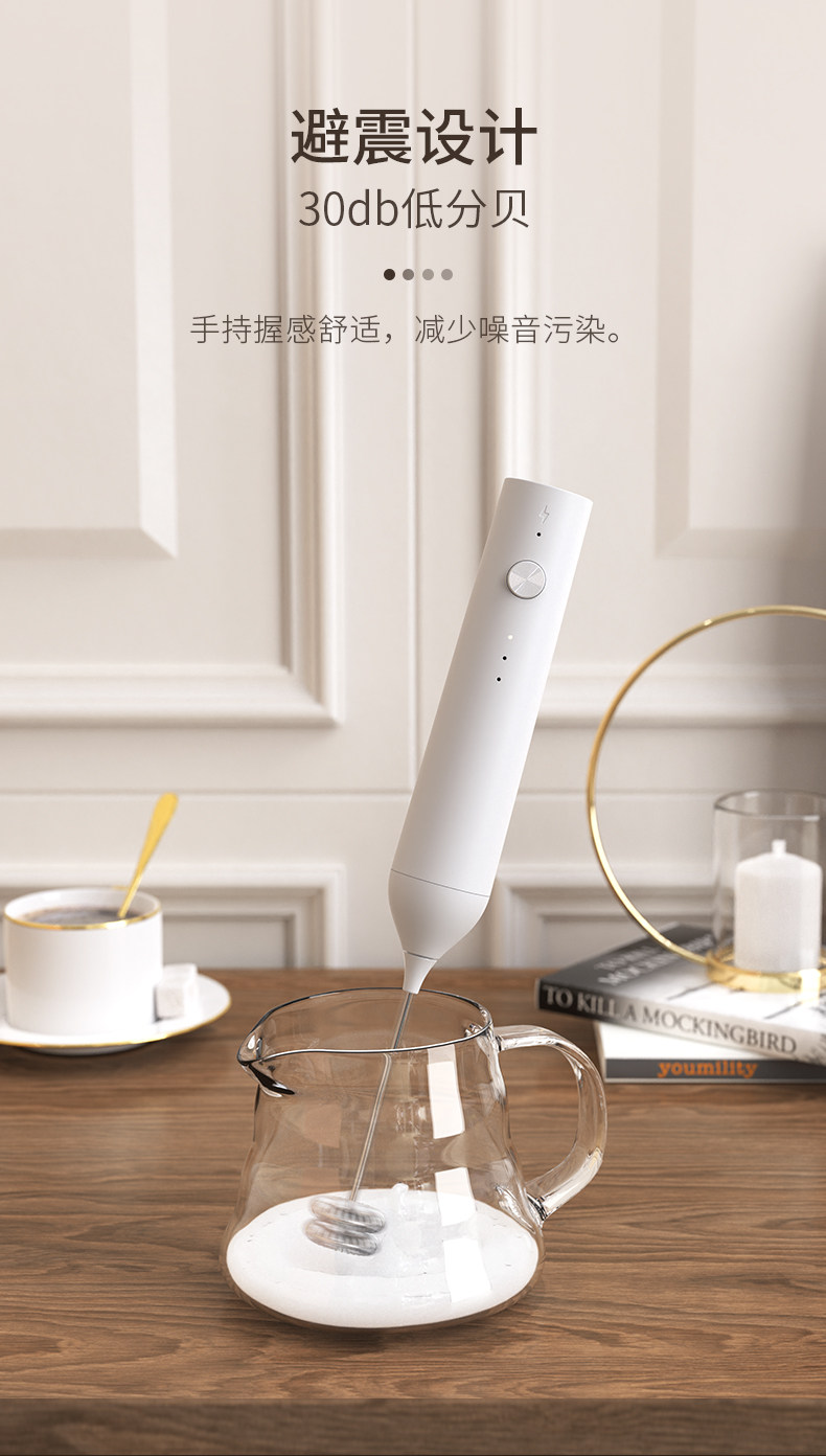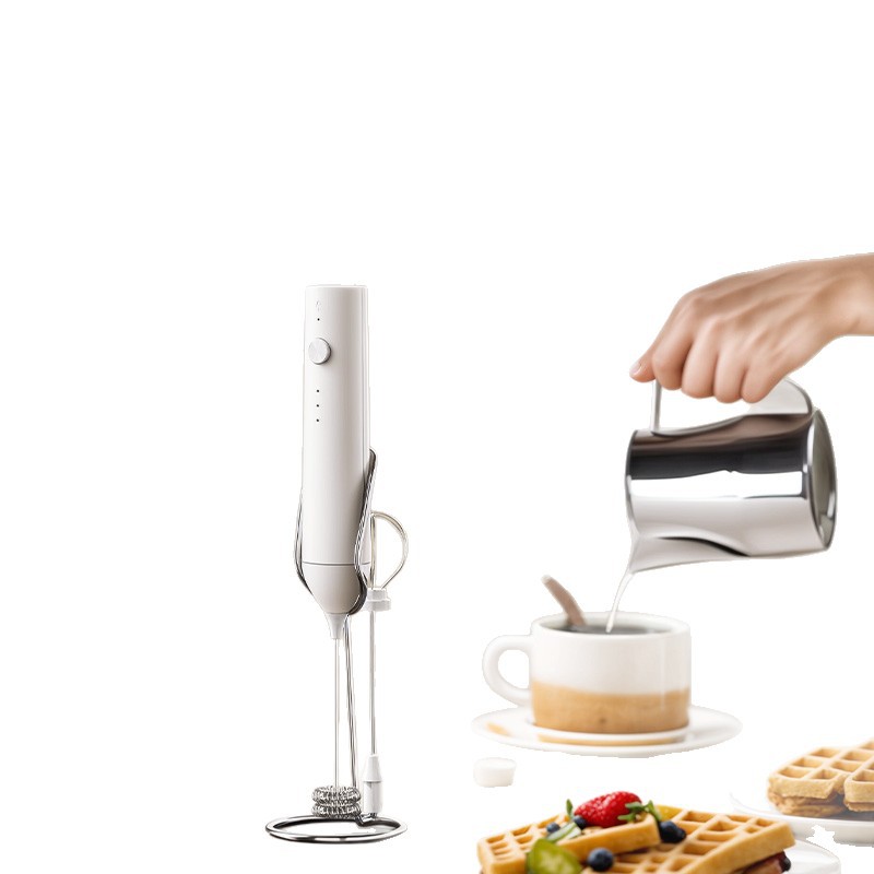 30 [lightweight] white single-head electric milk frother (rechargeable)