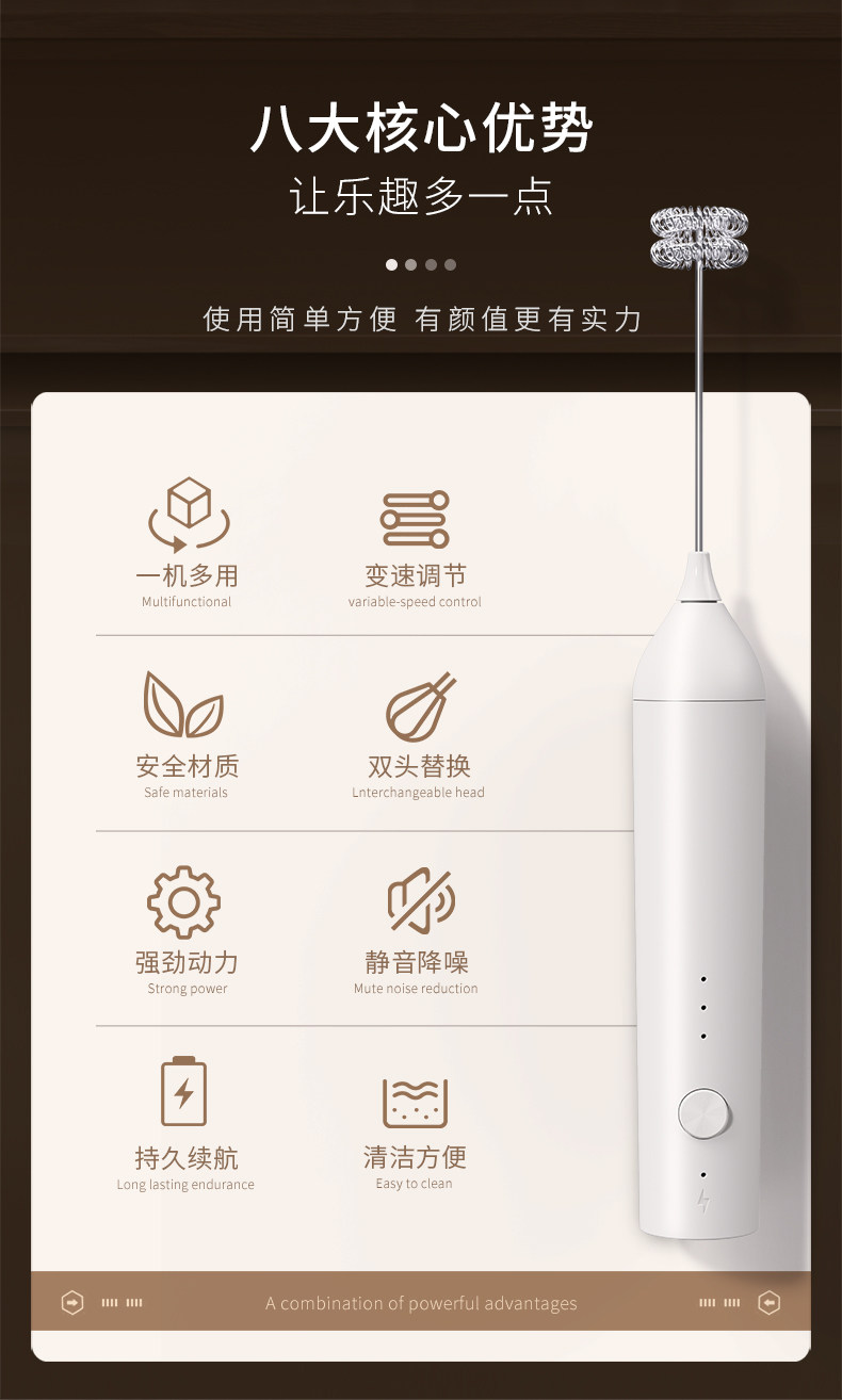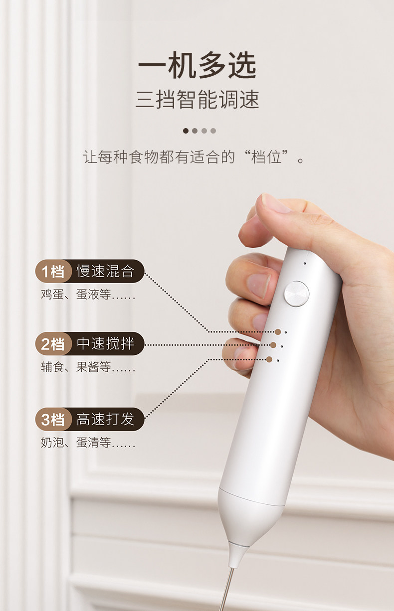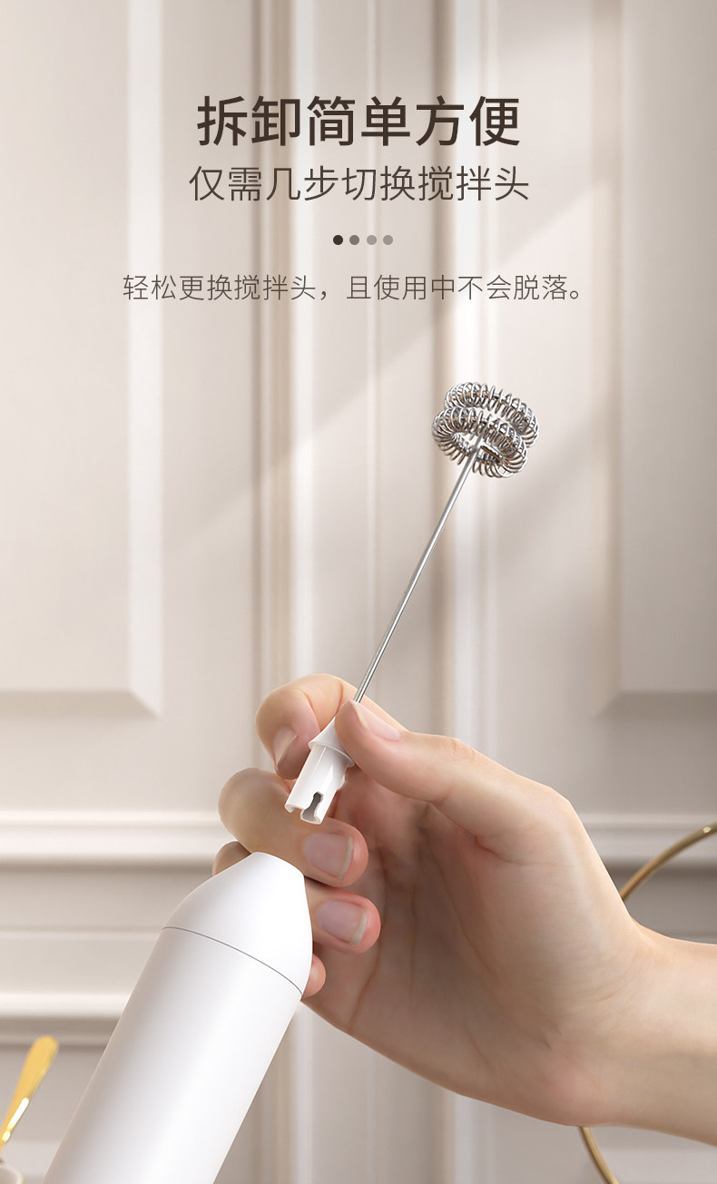 30 [lightweight] white single-head electric milk frother (rechargeable)