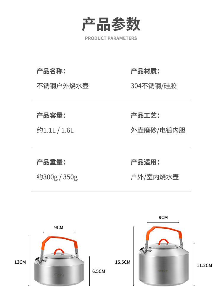 1.1l [304 stainless steel] kettle + net pocket