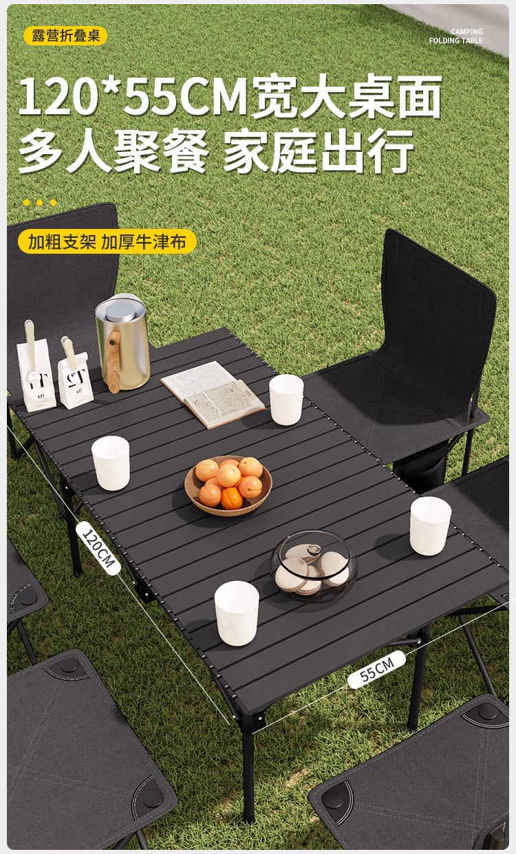 black [120cm extended table] for 7 people + free storage bag + mesh net