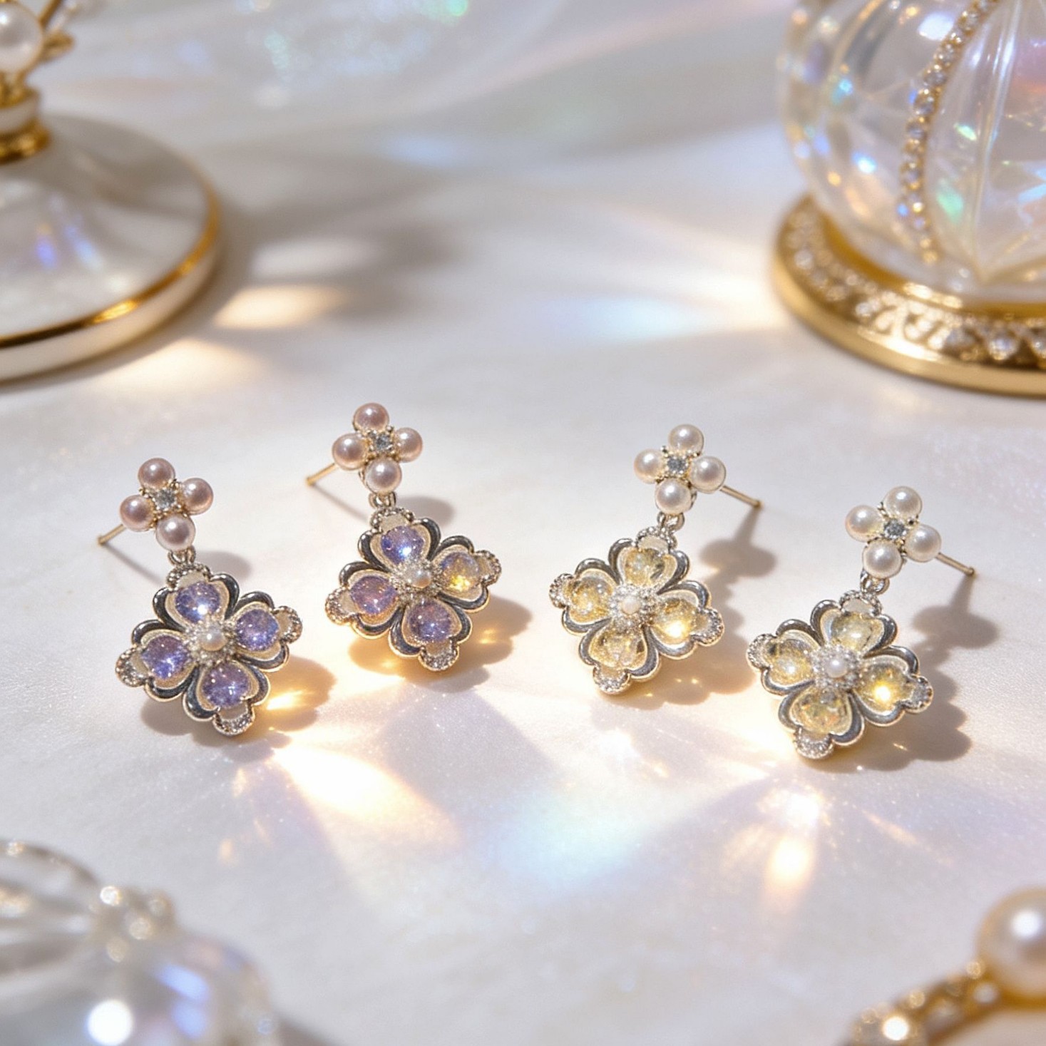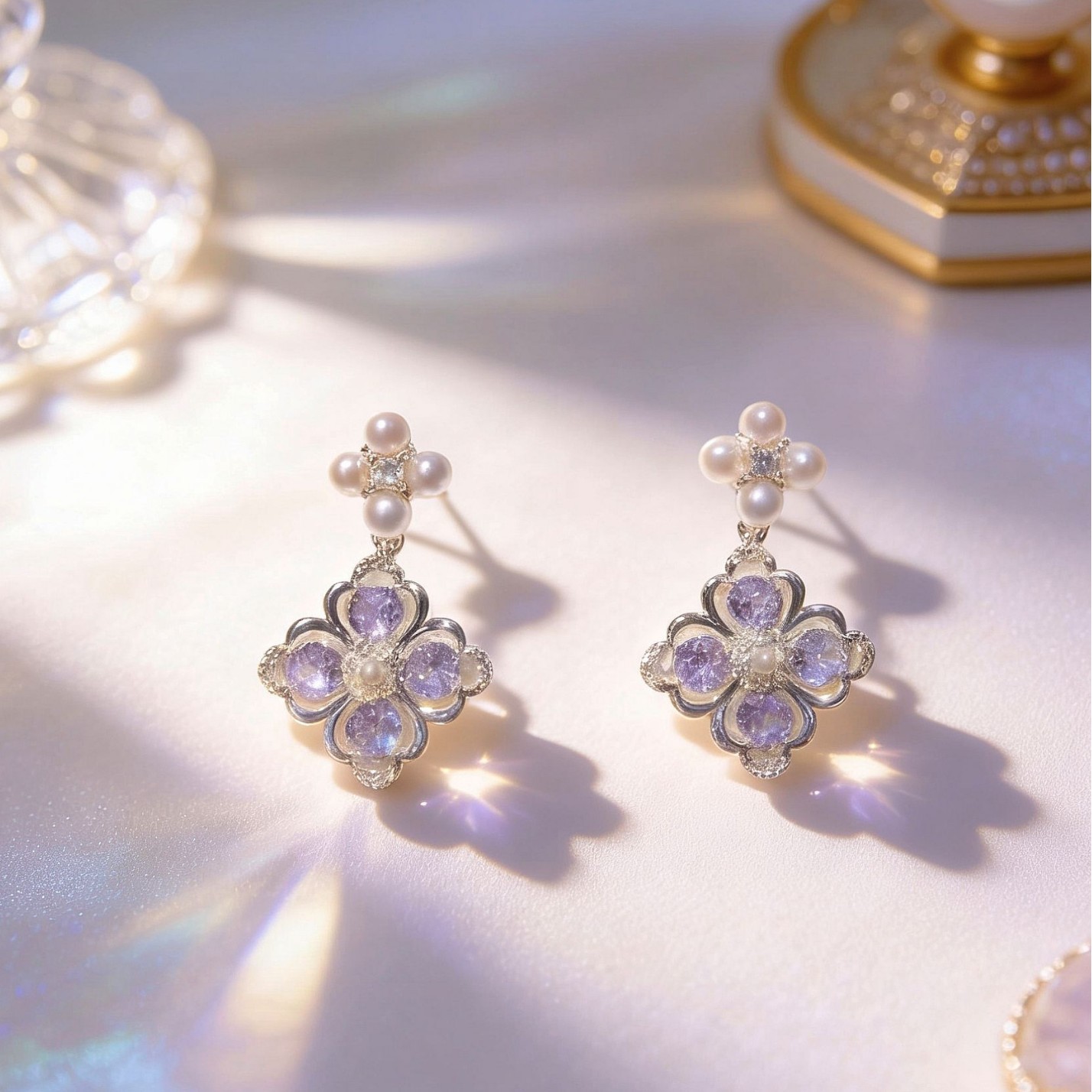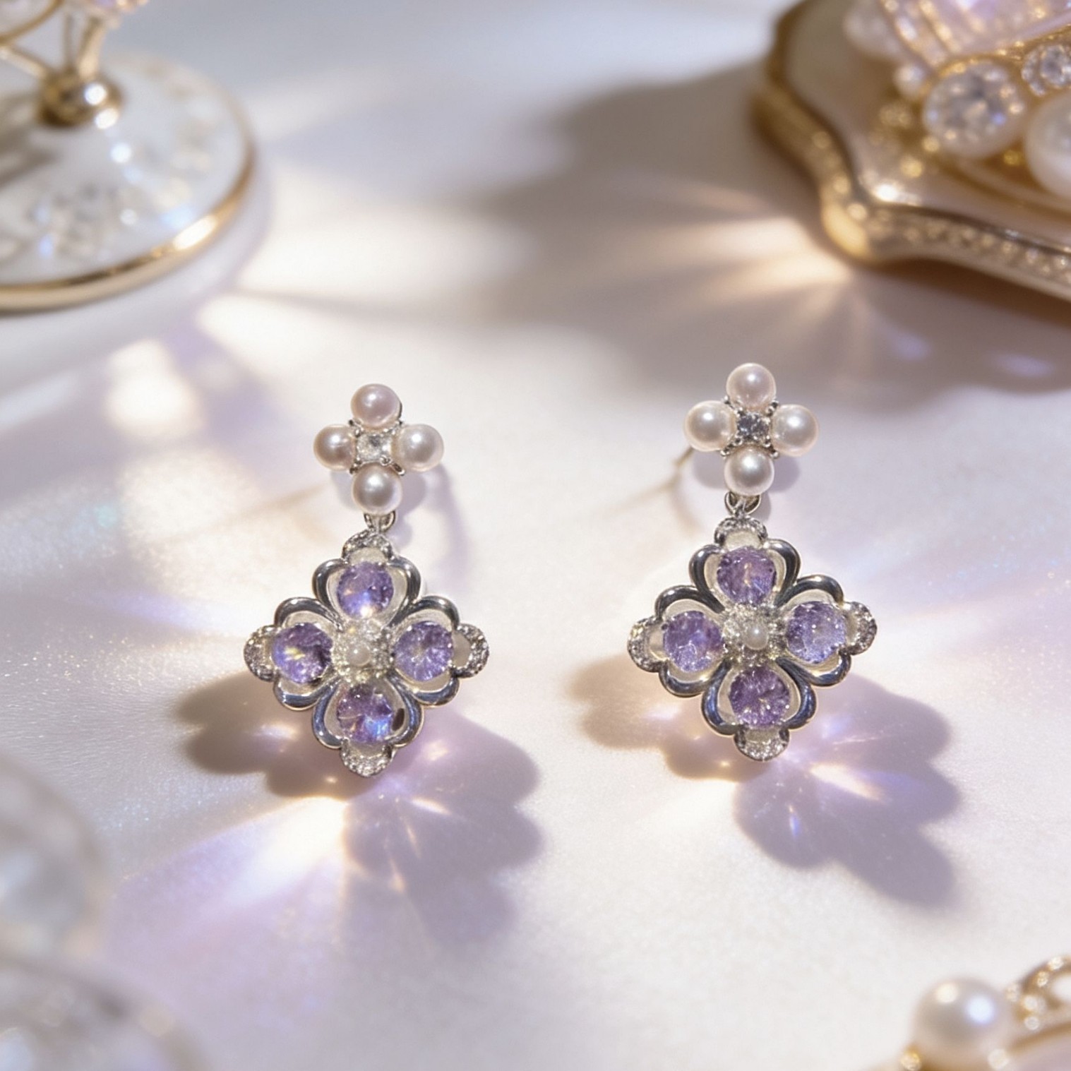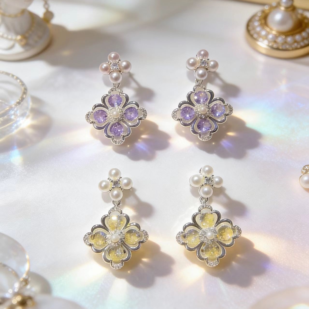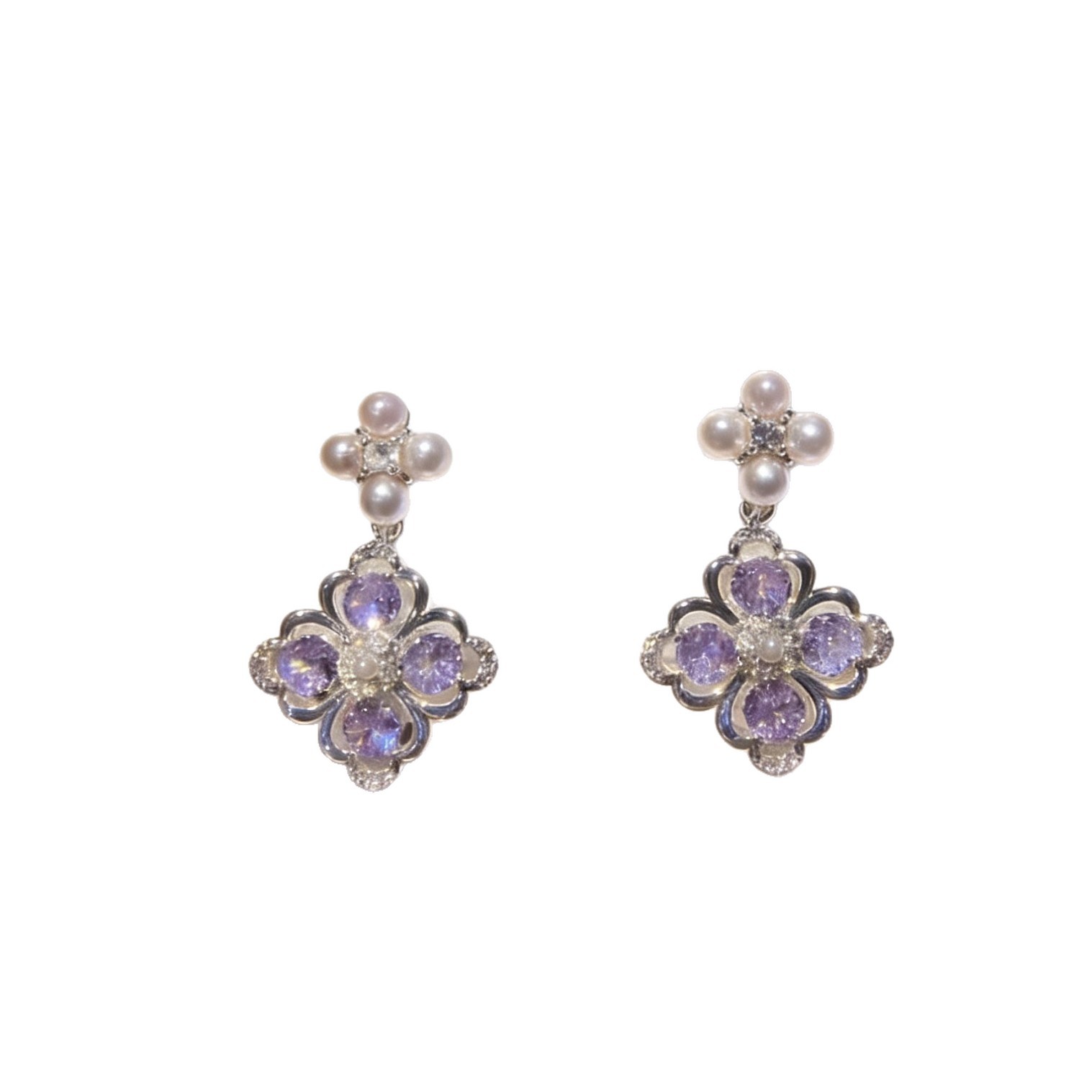purple flower eardrops stud earrings