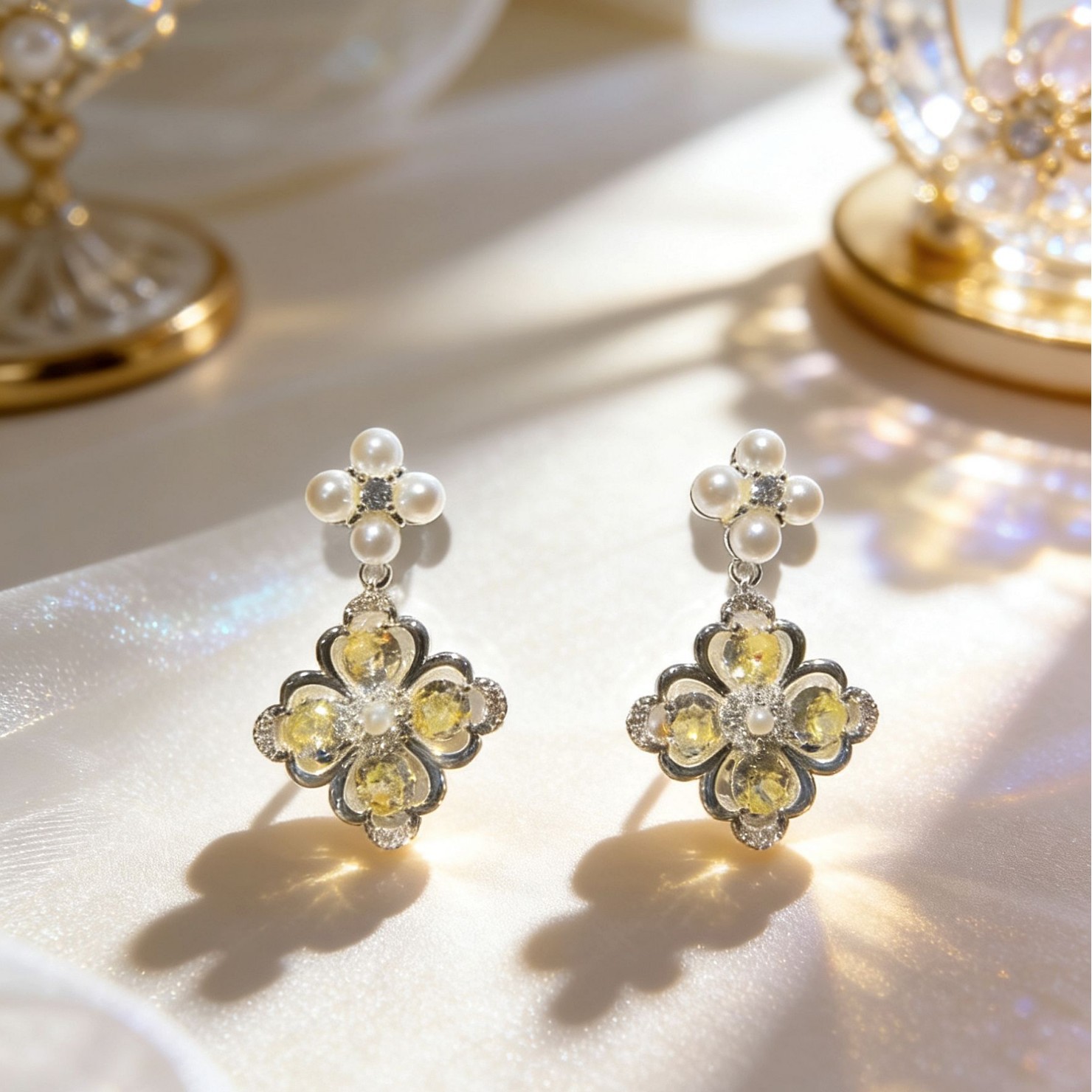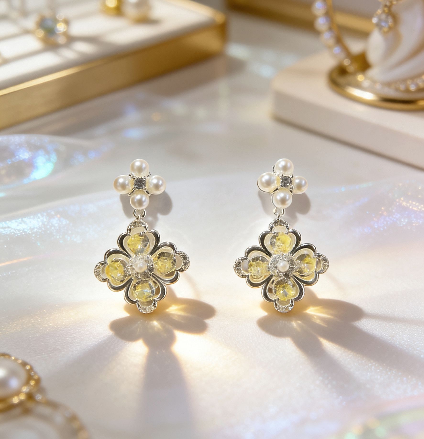 yellow flower eardrops stud earrings