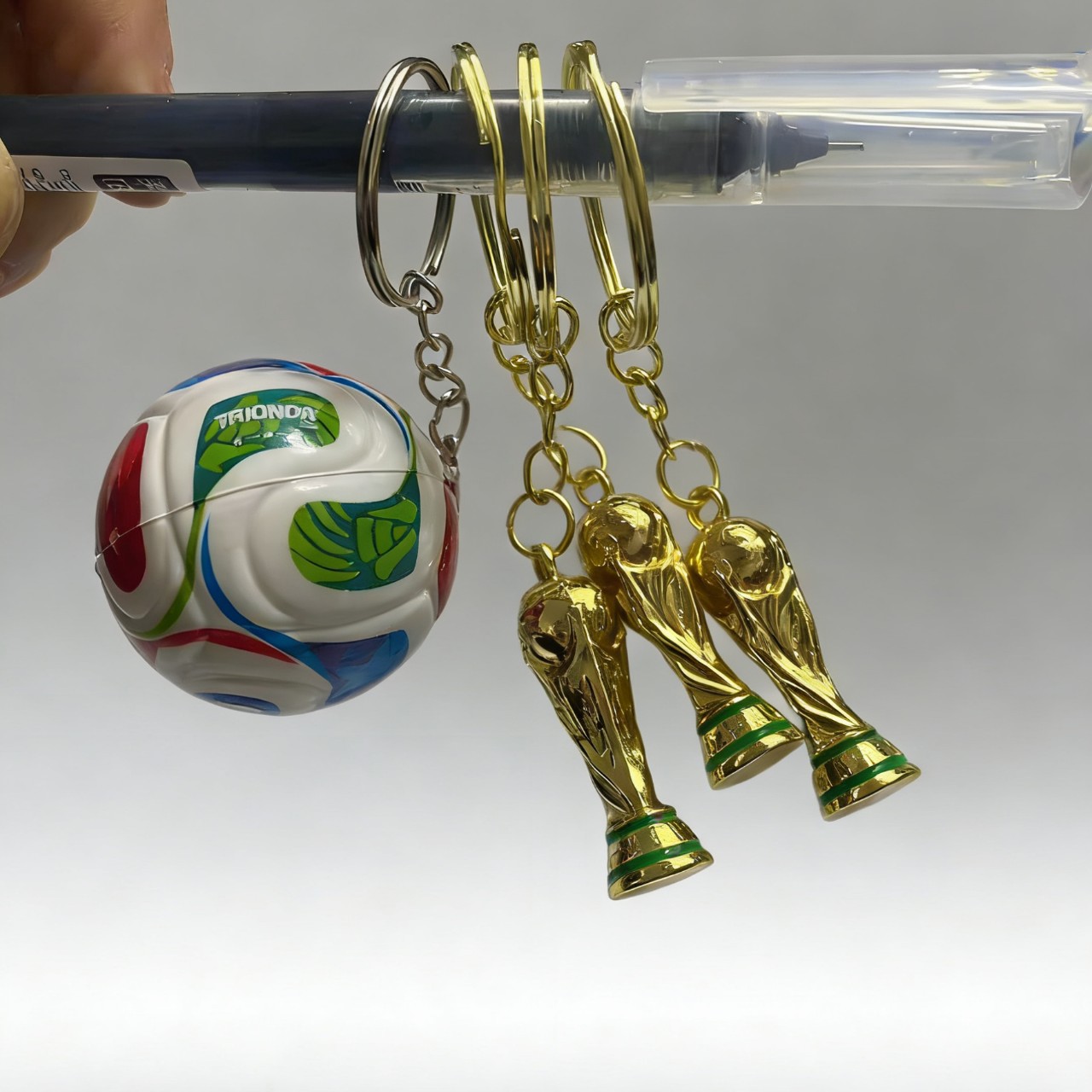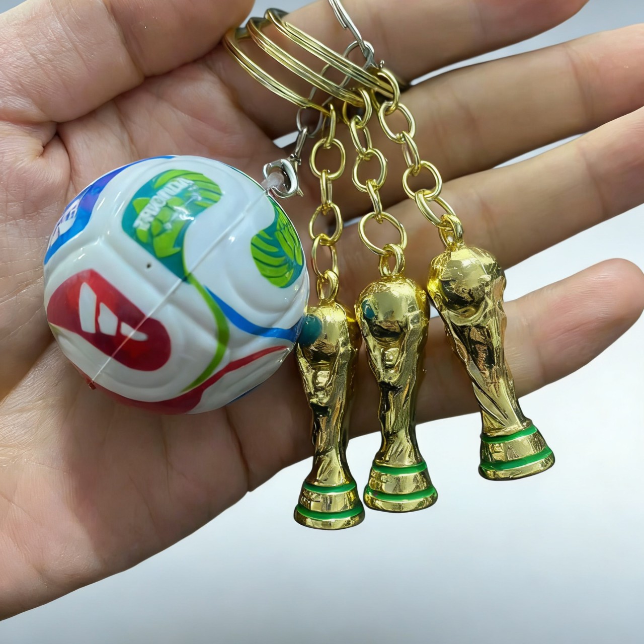 color: a set of football key ring + gold cups, world football only has balls, world