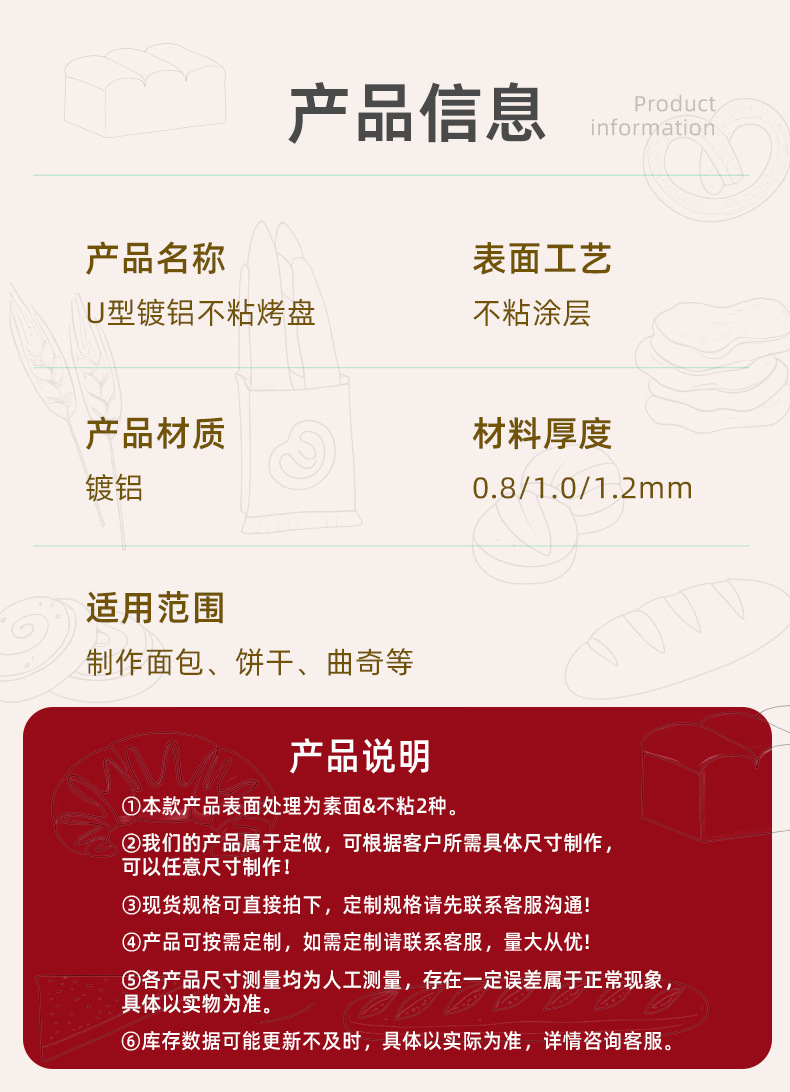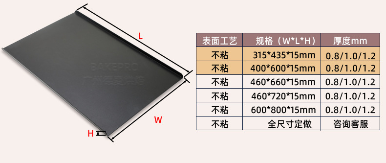 u-type aluminum-plated non-stick baking pan 400mm 600mm 15mm(1.2 thick)