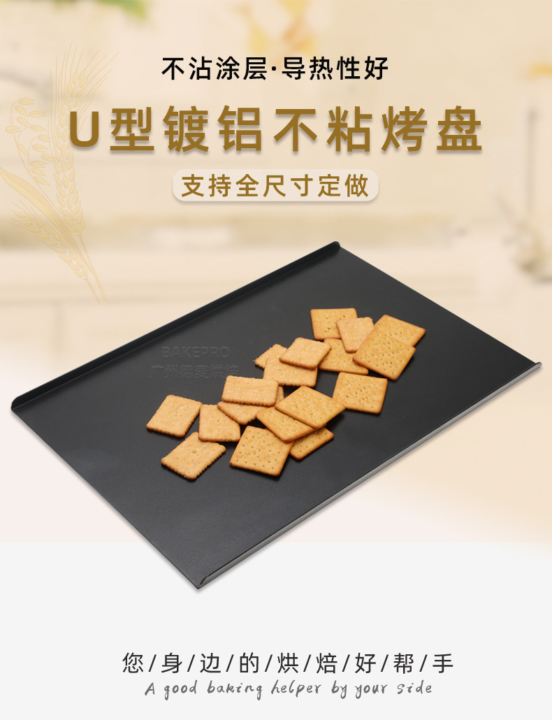 Commercial thickened cookie baking tray, direct factory sales, U-shaped aluminum-coated baking tray for pastry oven