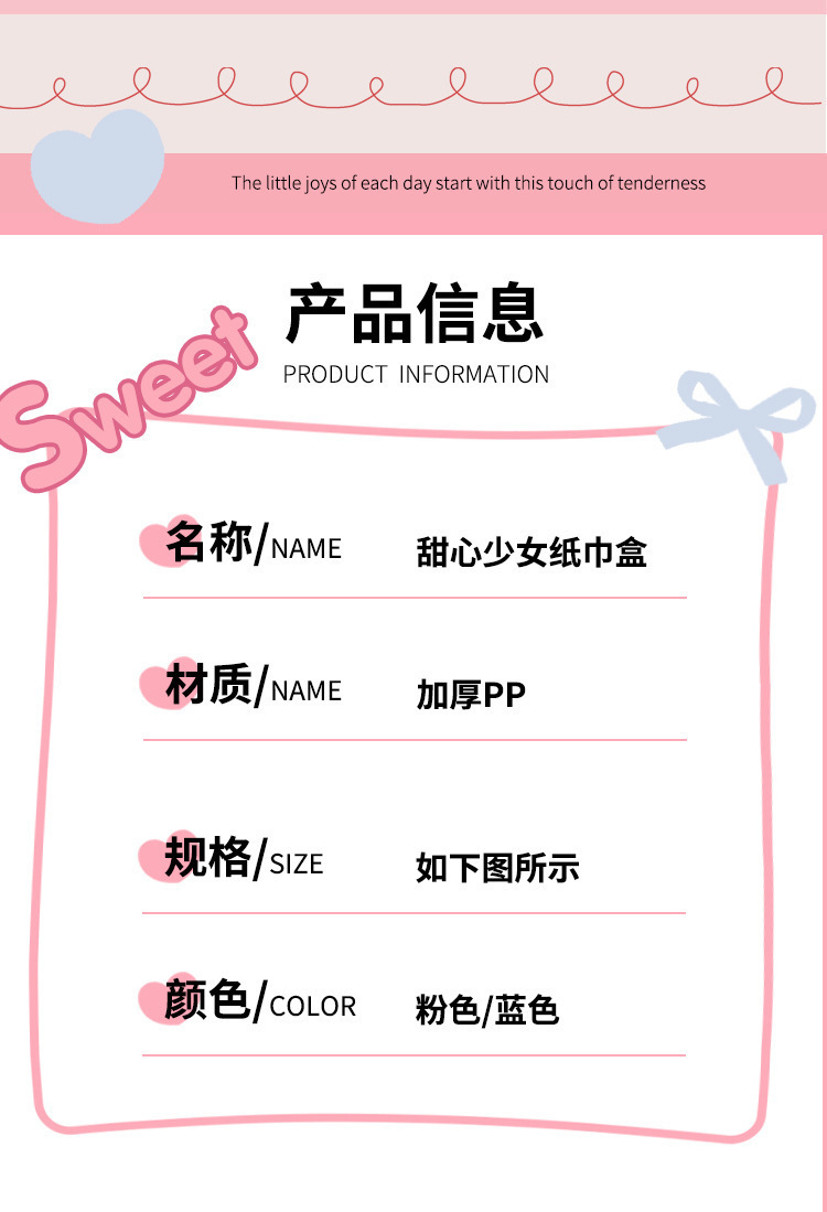 1067 sweet girl tissue box pink