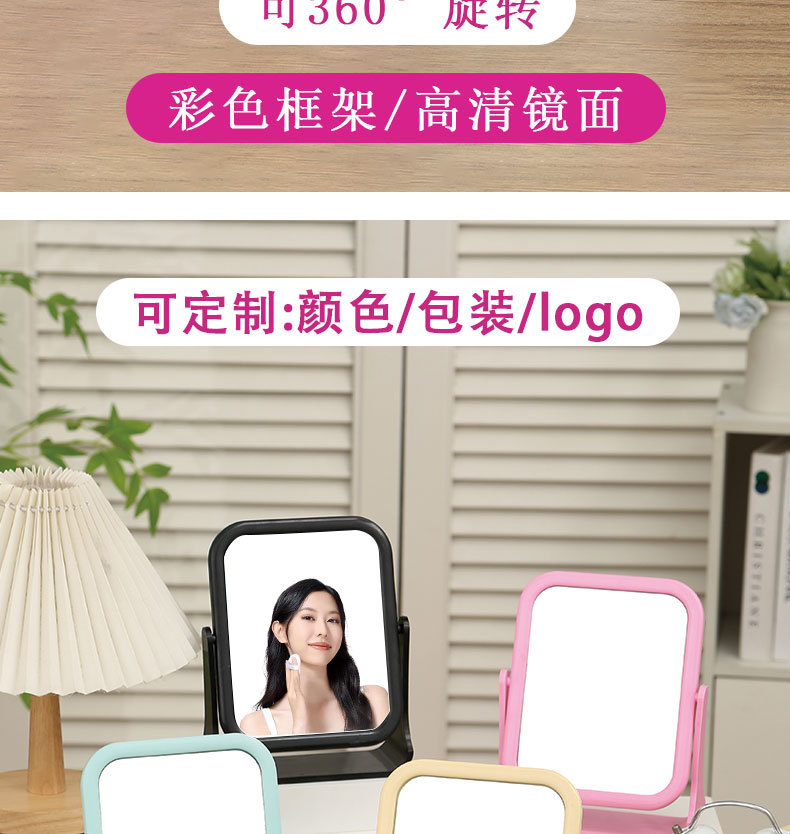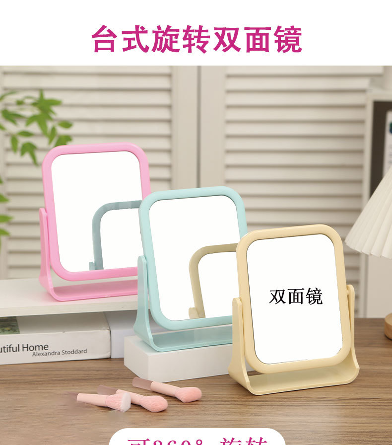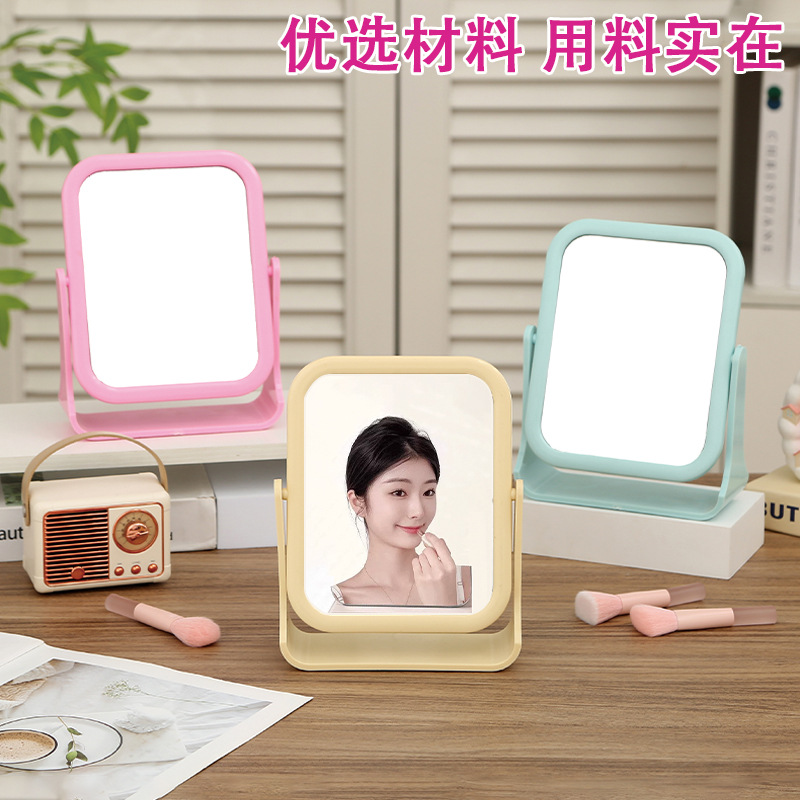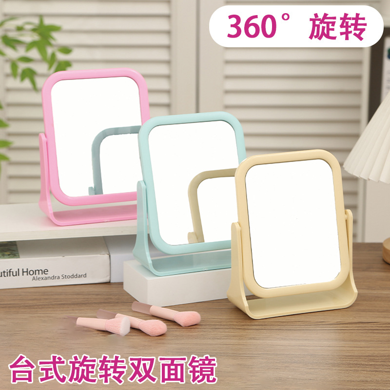 desktop double-sided mirror with 360-degree rotation, vertical makeup mirror in instagram style for girls to touch up makeup, student dormitory dressing mirror