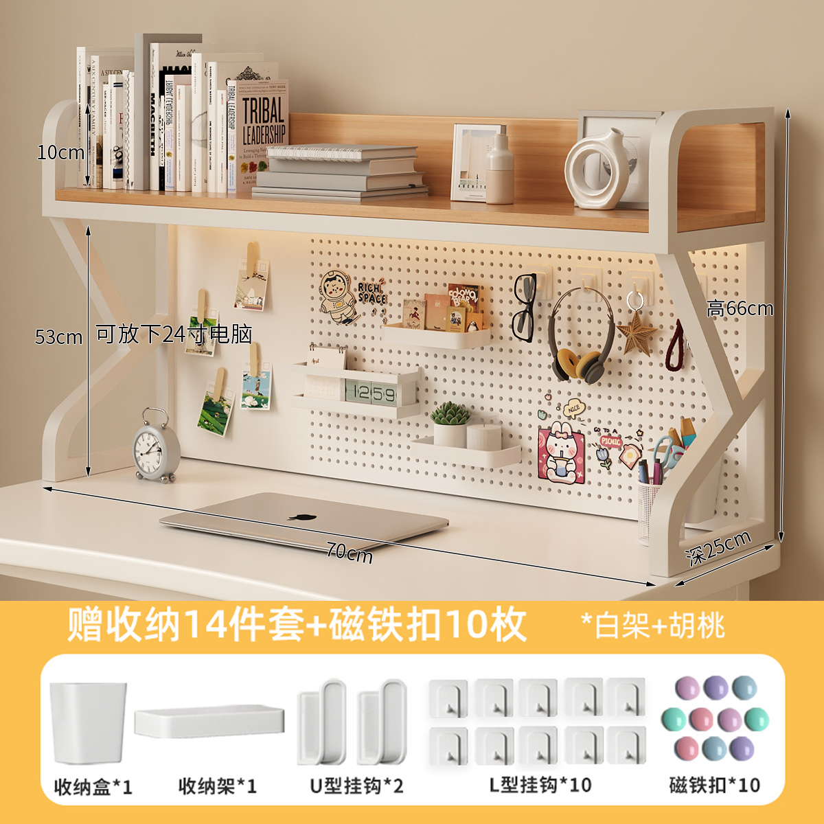 double-layer/white frame + walnut/90cm long [gift of 14-piece set + magnetic snap]