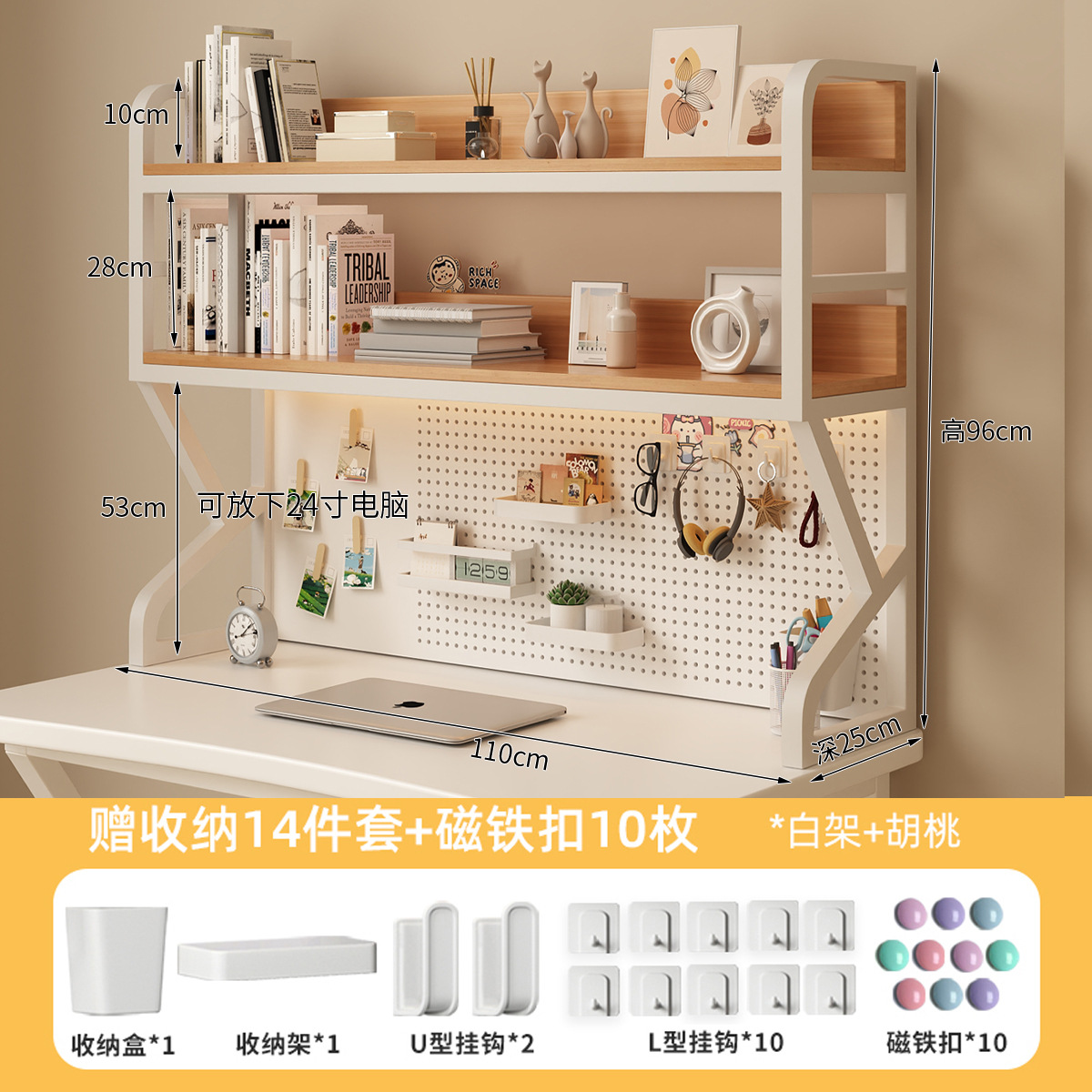 double-layer/white frame + walnut/110cm long [gift of 14-piece set + magnetic snap]