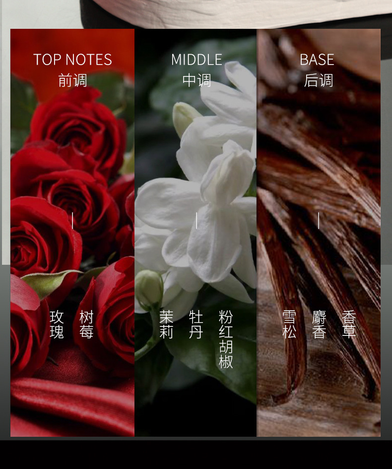fragrance: peony, musk scent, vanilla flavor, rose flavor, jasmine flavor,
