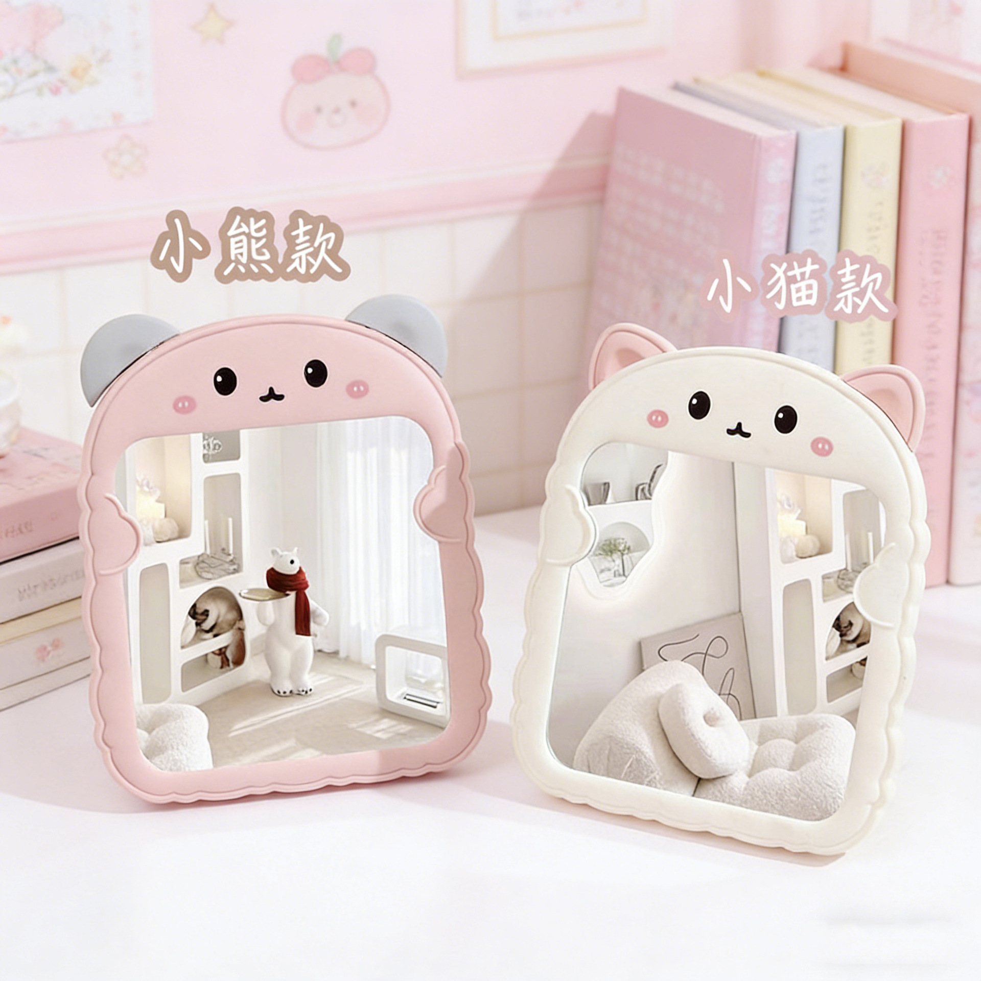 mirror cat-ear foldable plastic cute single-sided mirror for students' dormitory bathroom mirror dressing mirror desktop makeup mirror
