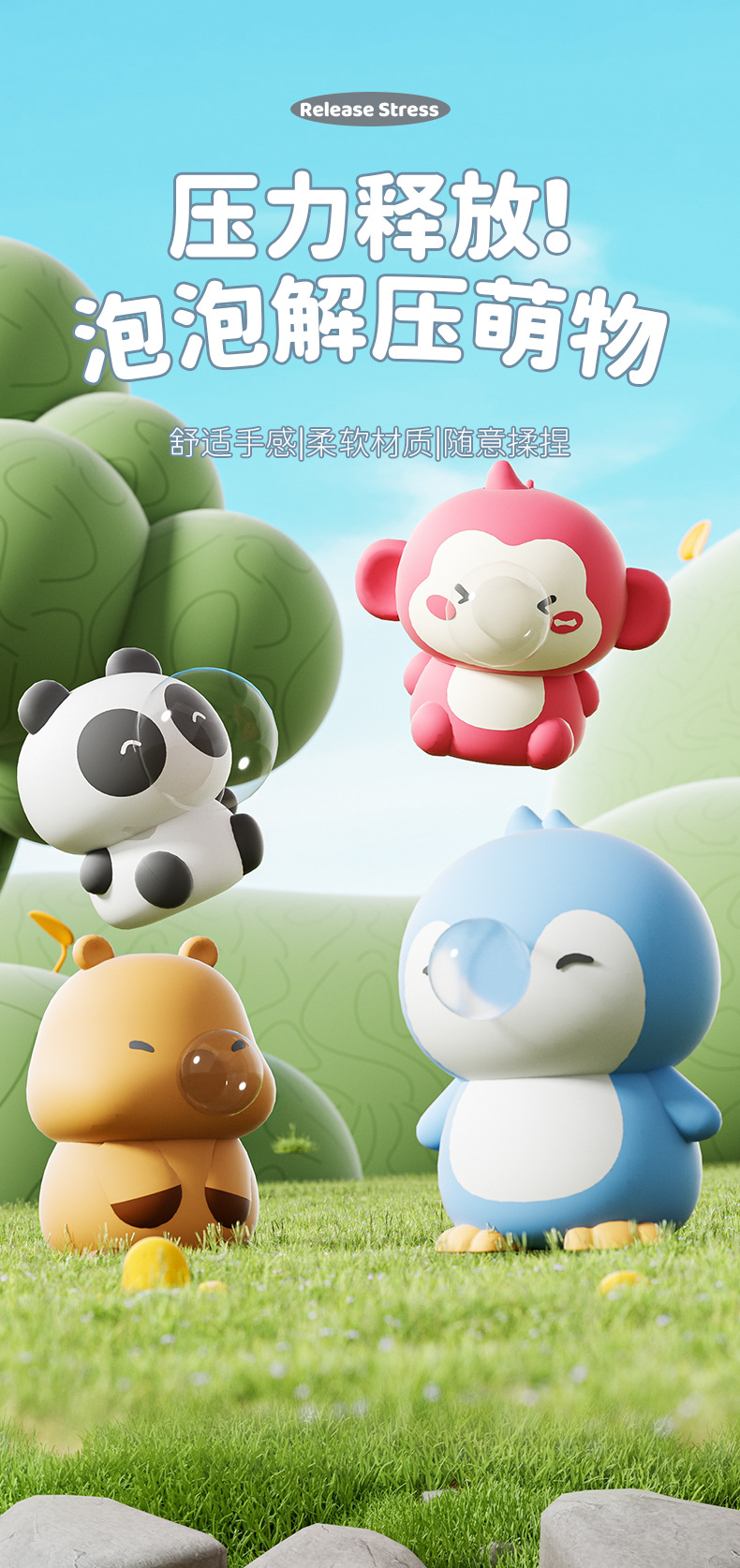 [4 pack] capabala + standing penguin + panda + monkey