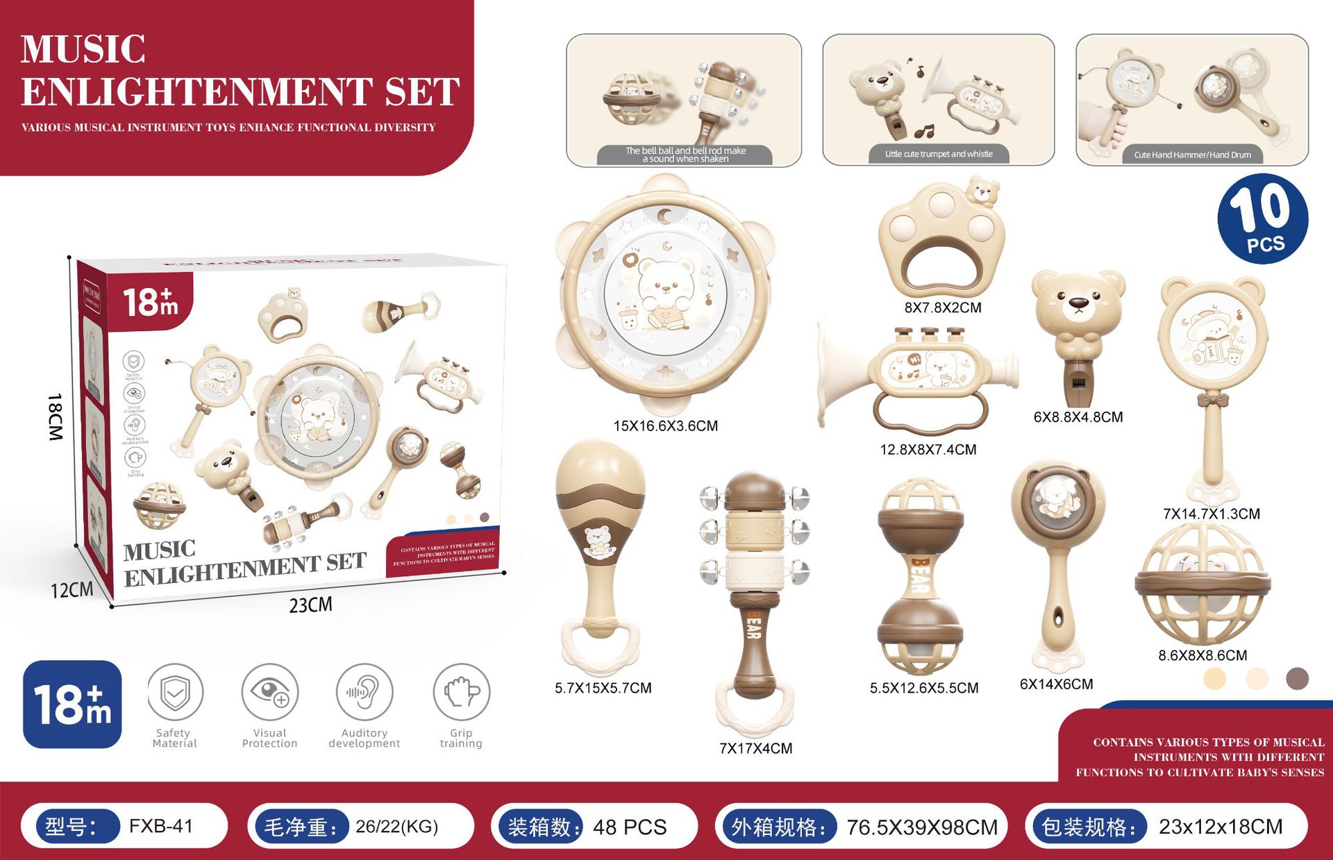 brown bear [rattle musical instrument 10 pcs set] chinese color box