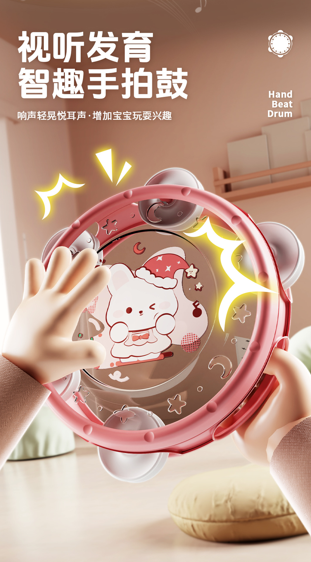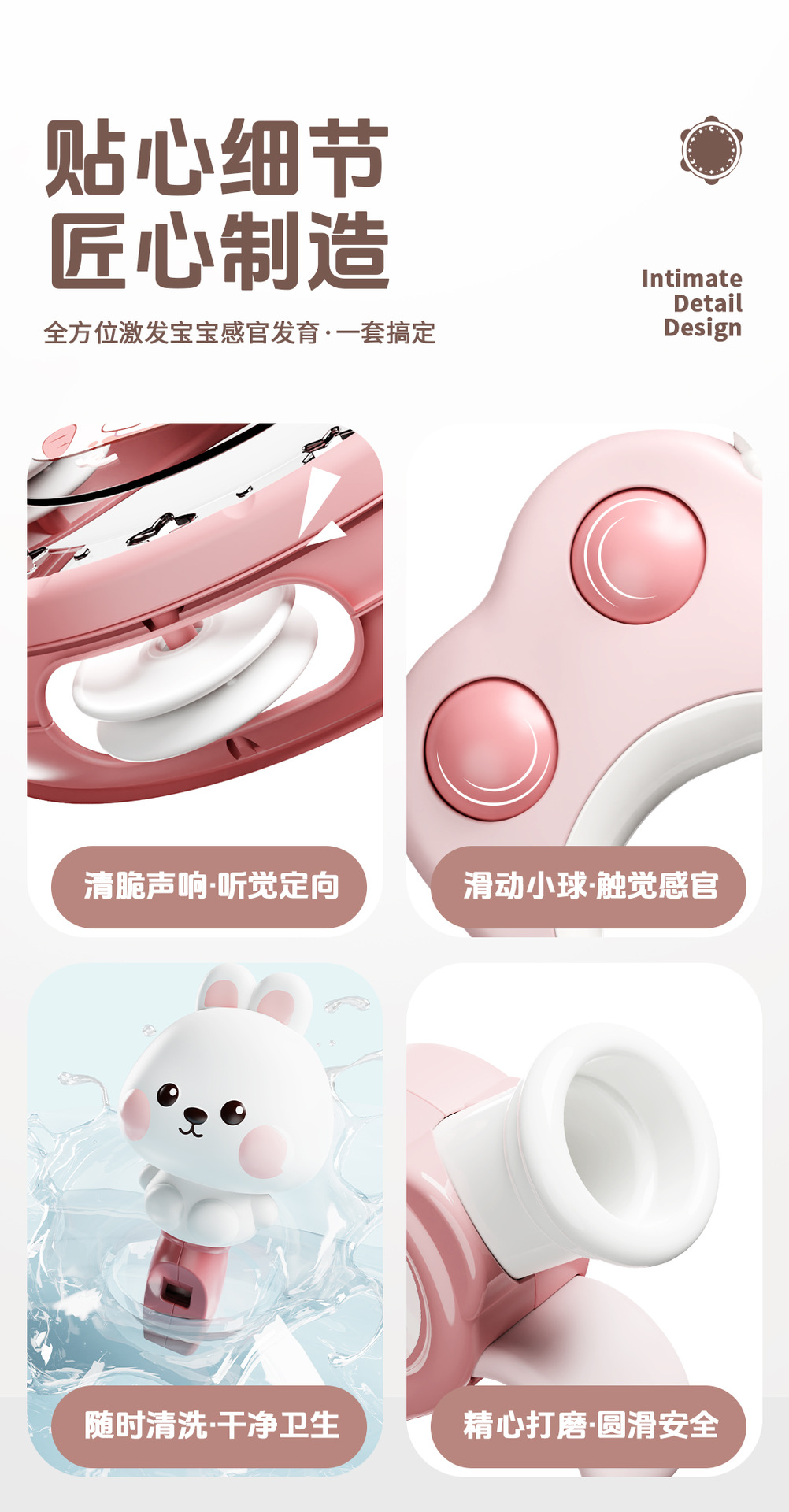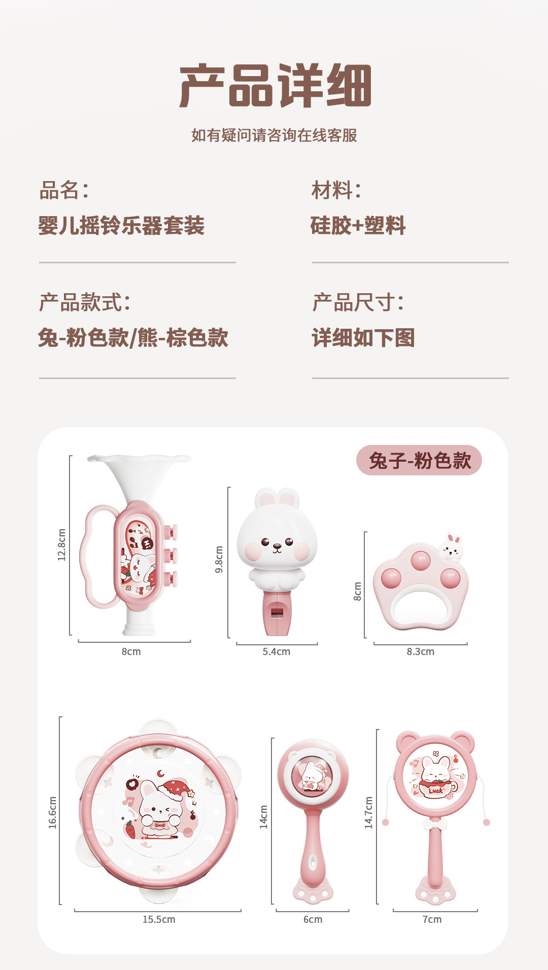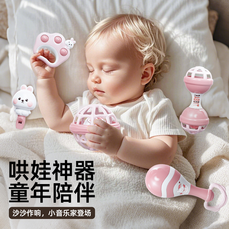 pink rabbit [six-piece set of rattle musical instruments] chinese color box