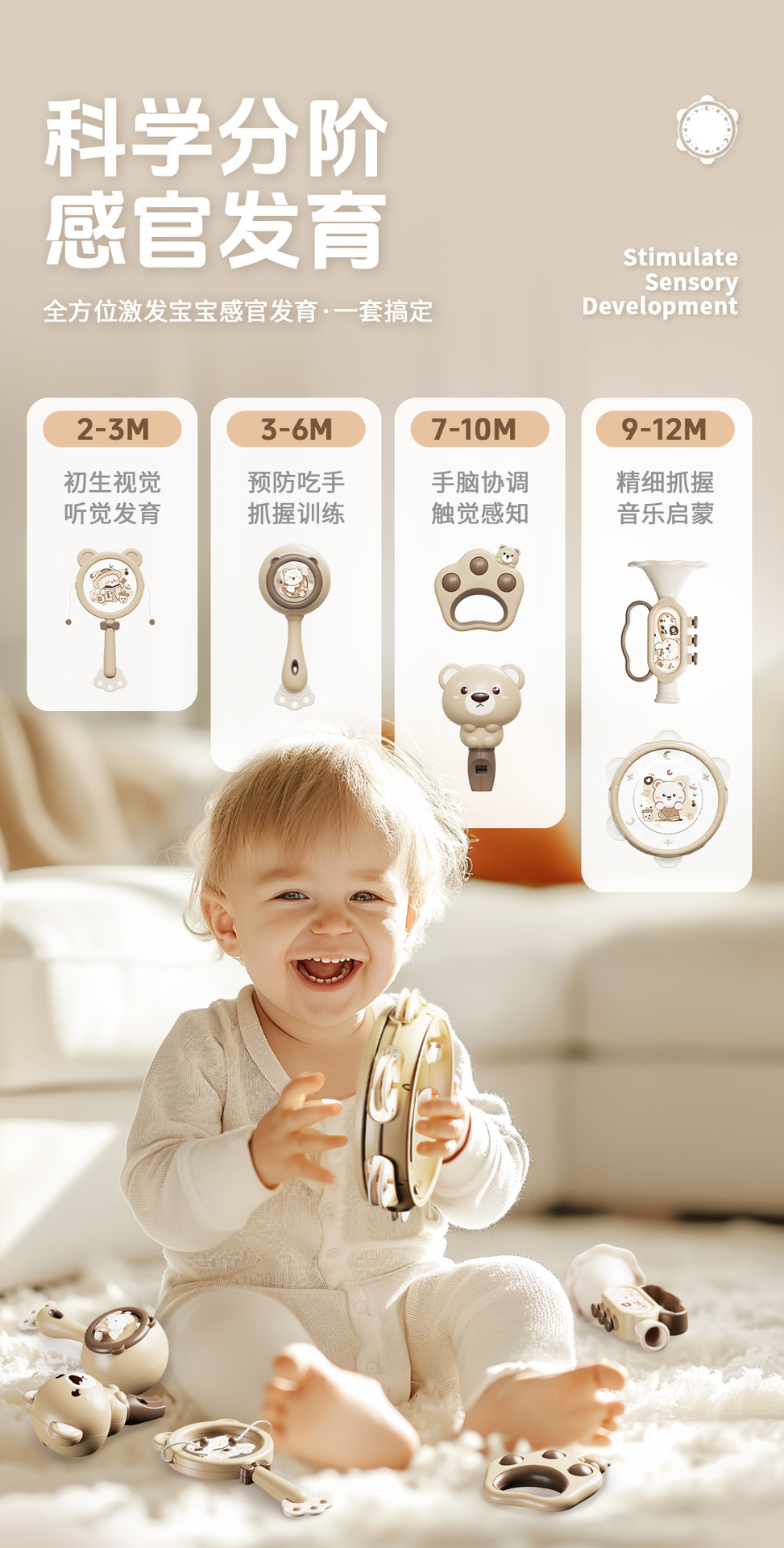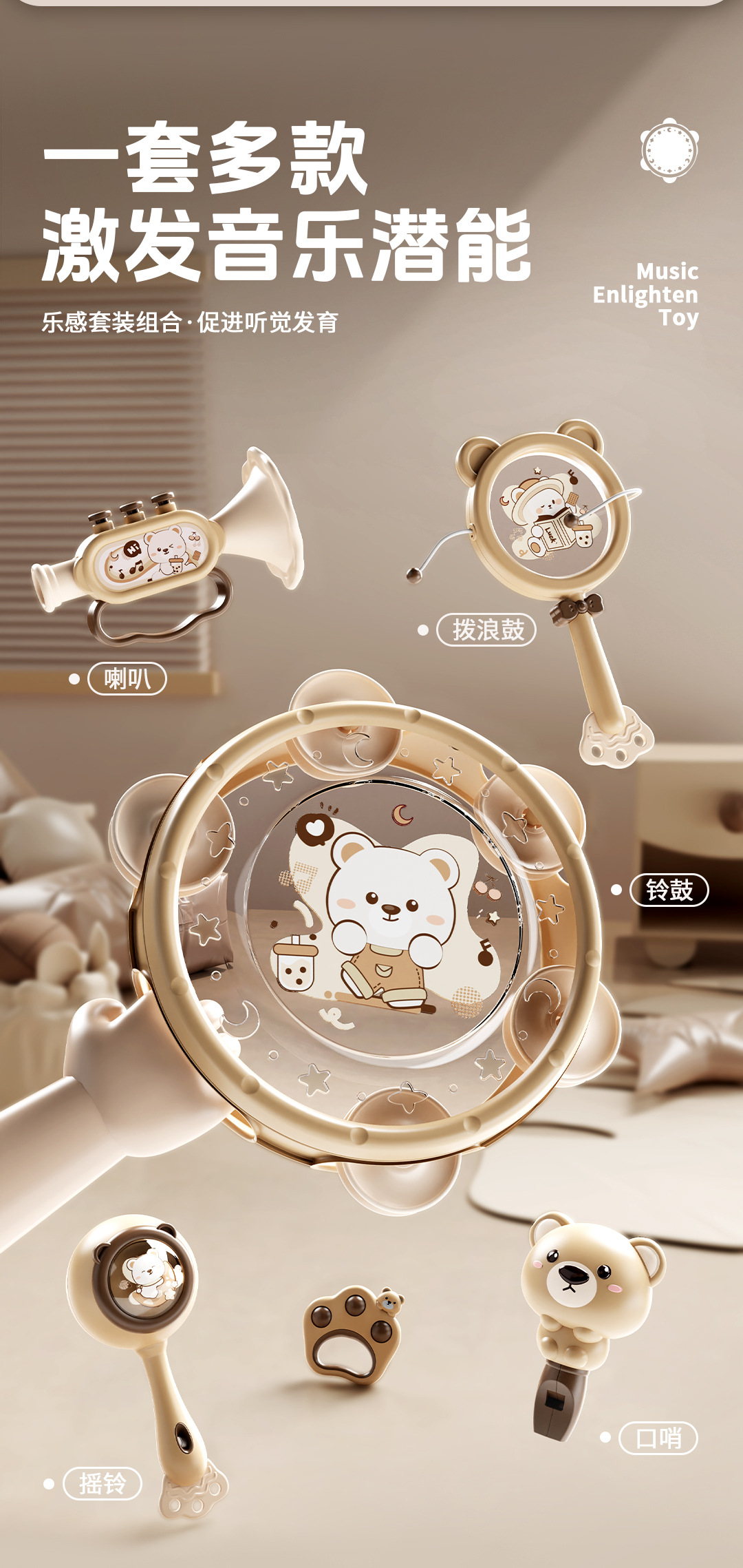 brown bear [four-piece set of rattle musical instruments] chinese color box