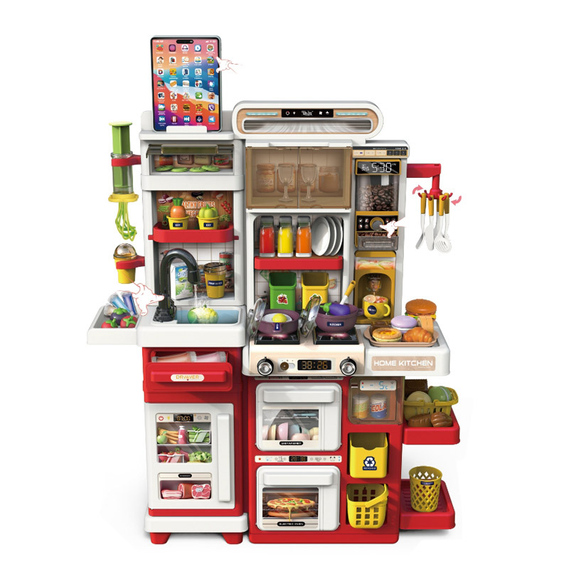 66t-2-double cabinet recording light colored clay dining table-red-english color box