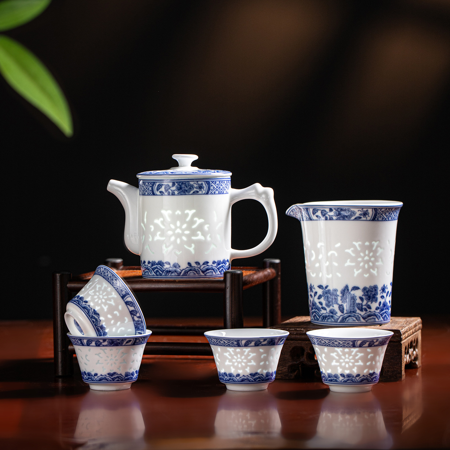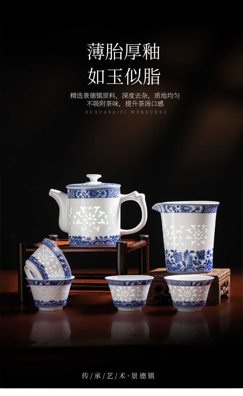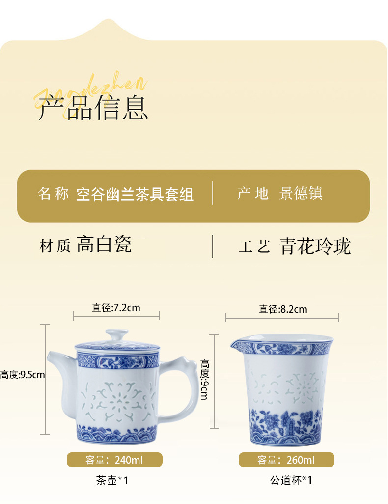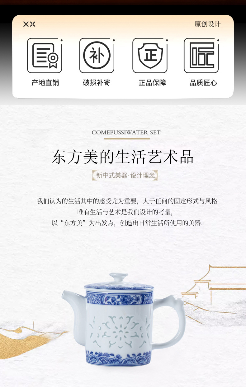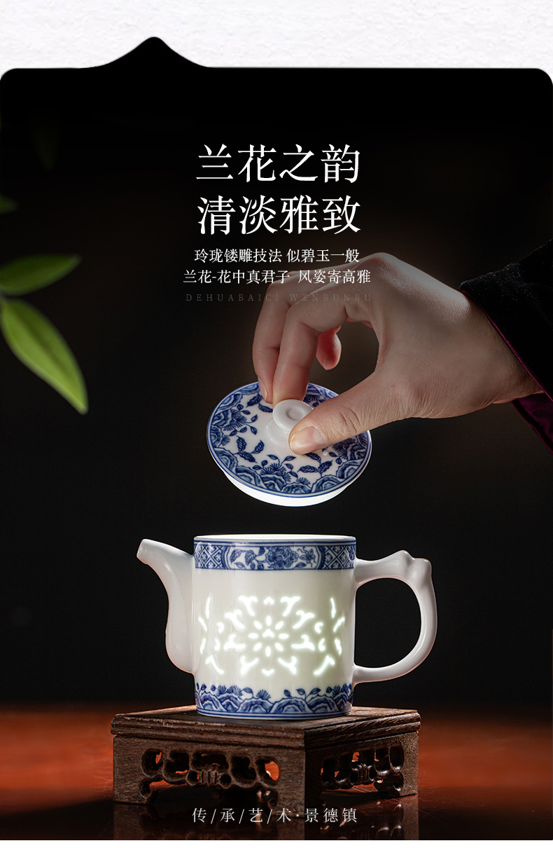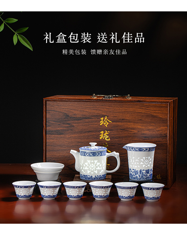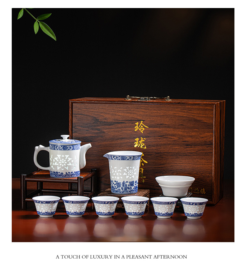 konggu orchid blue and white tea set-10 heads with teapot [exquisite wood box]]