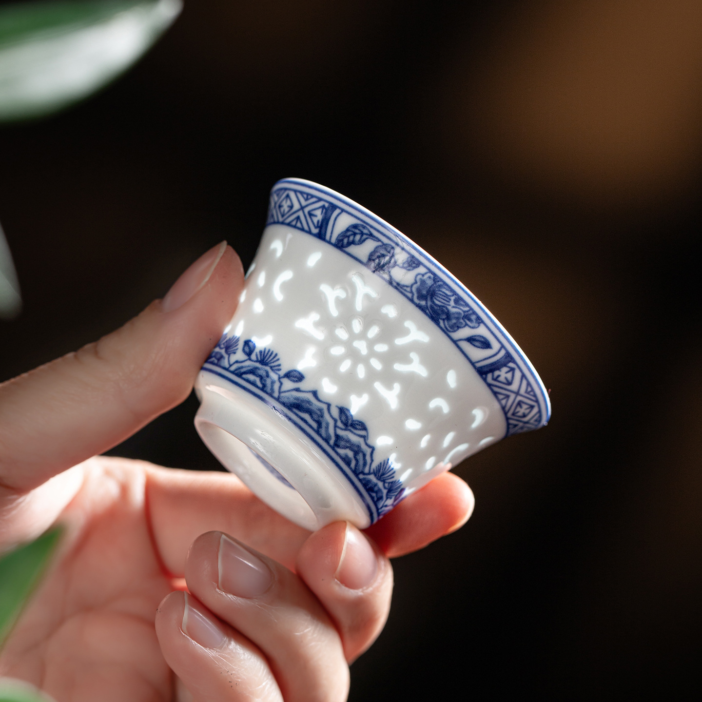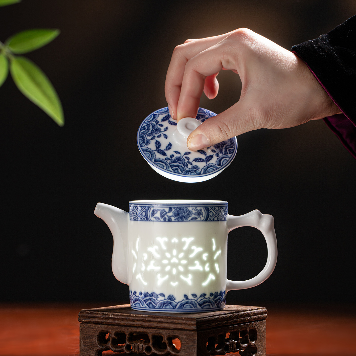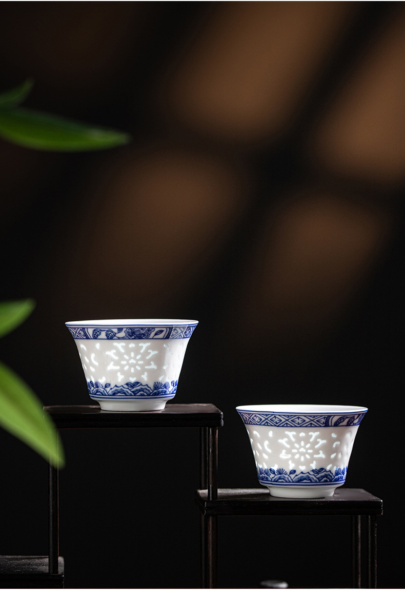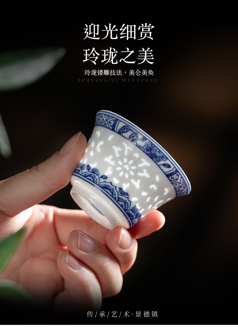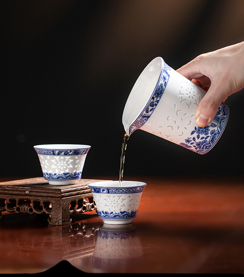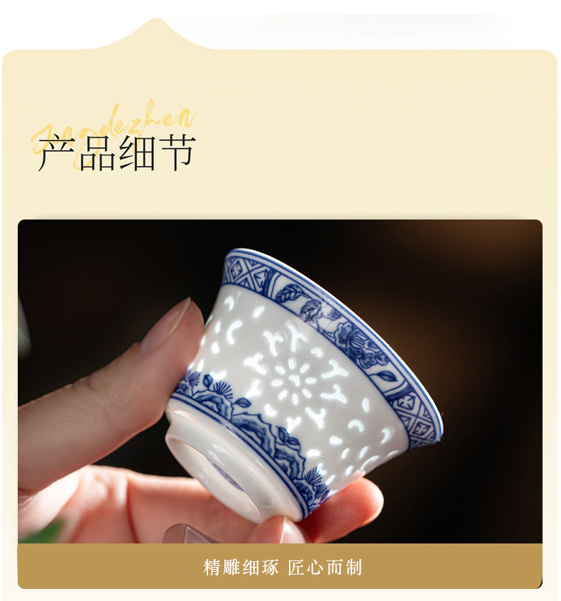 konggu orchid blue and white tea set-10 heads with teapot [exquisite wood box]]
