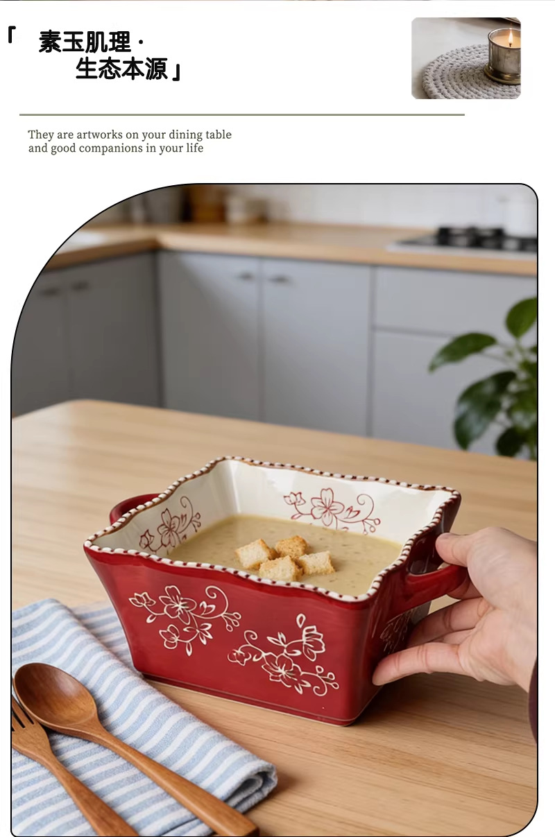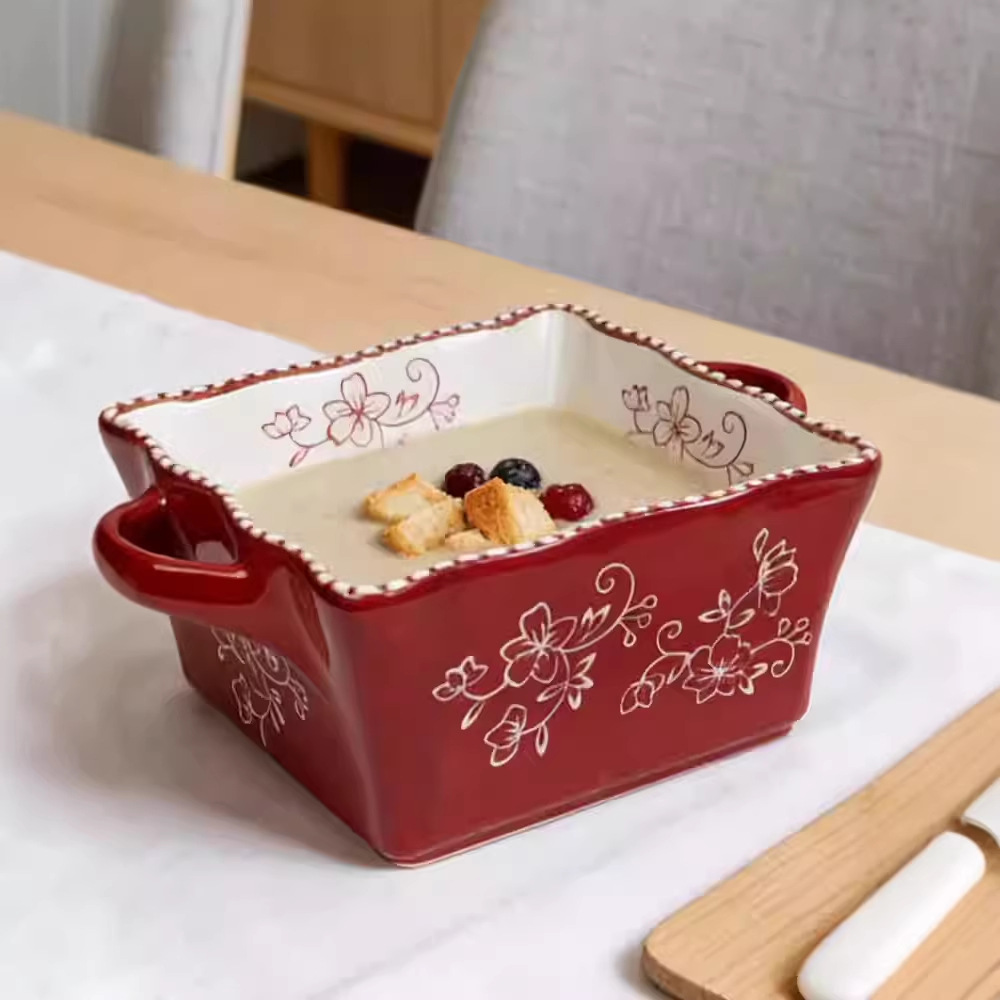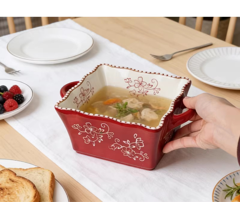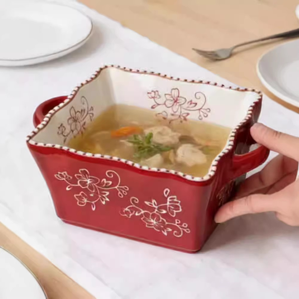 8-inch lace beads point square binaural soup bowl