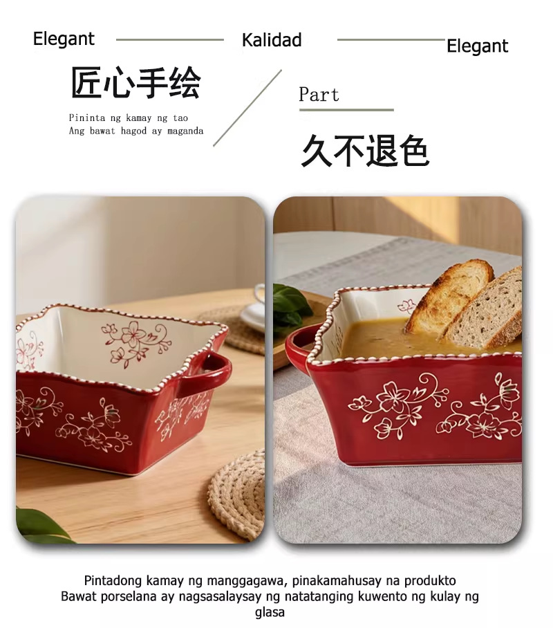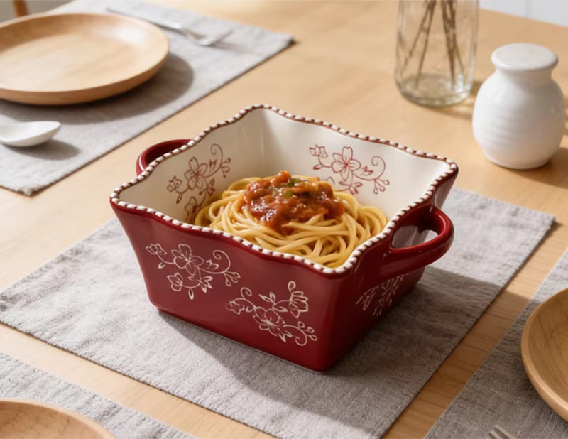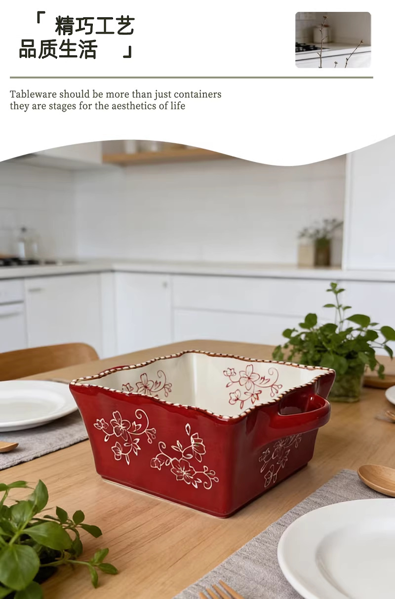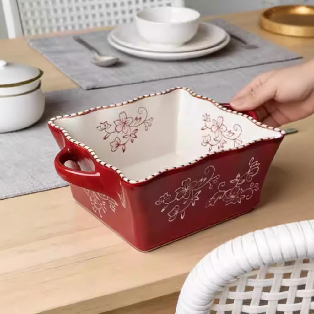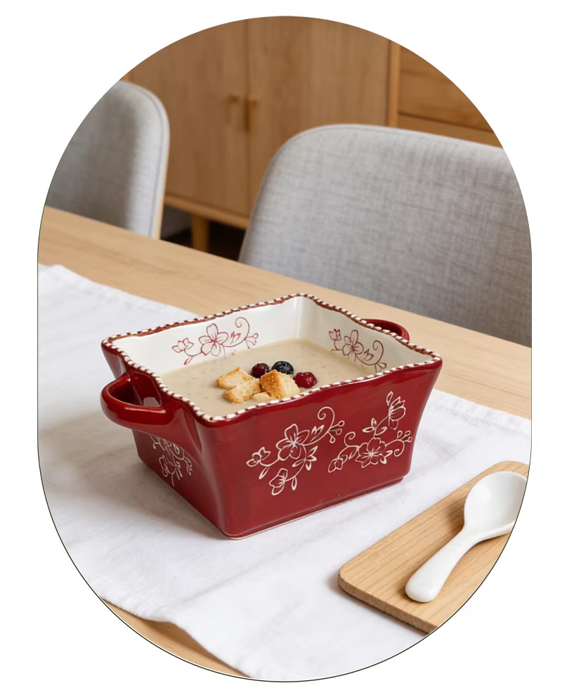 8-inch lace beads point square binaural soup bowl
