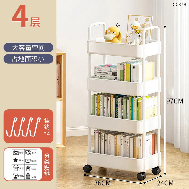 four-layer white with wheels (hook + sticker +2 wall-mounted boxes) without brakes