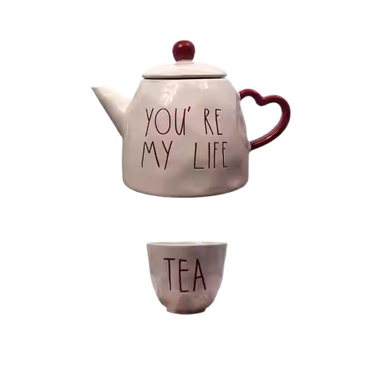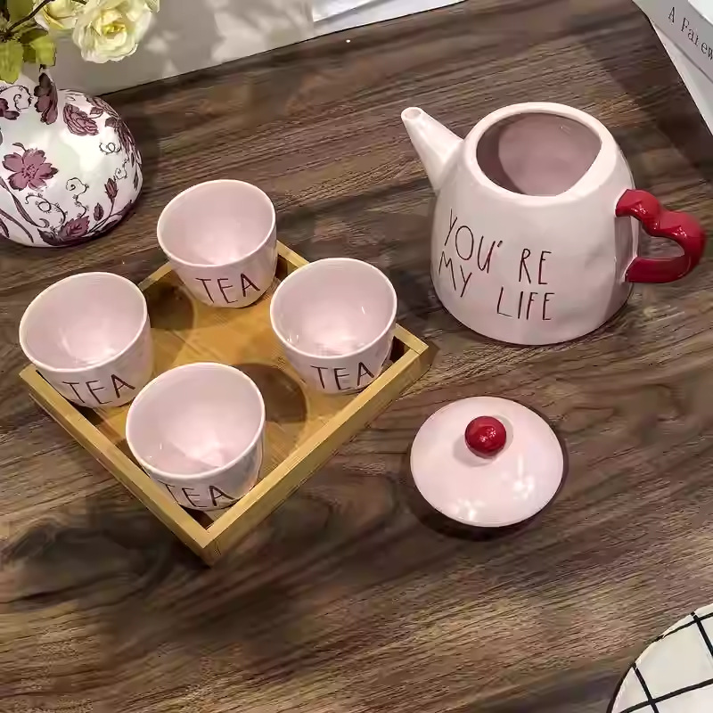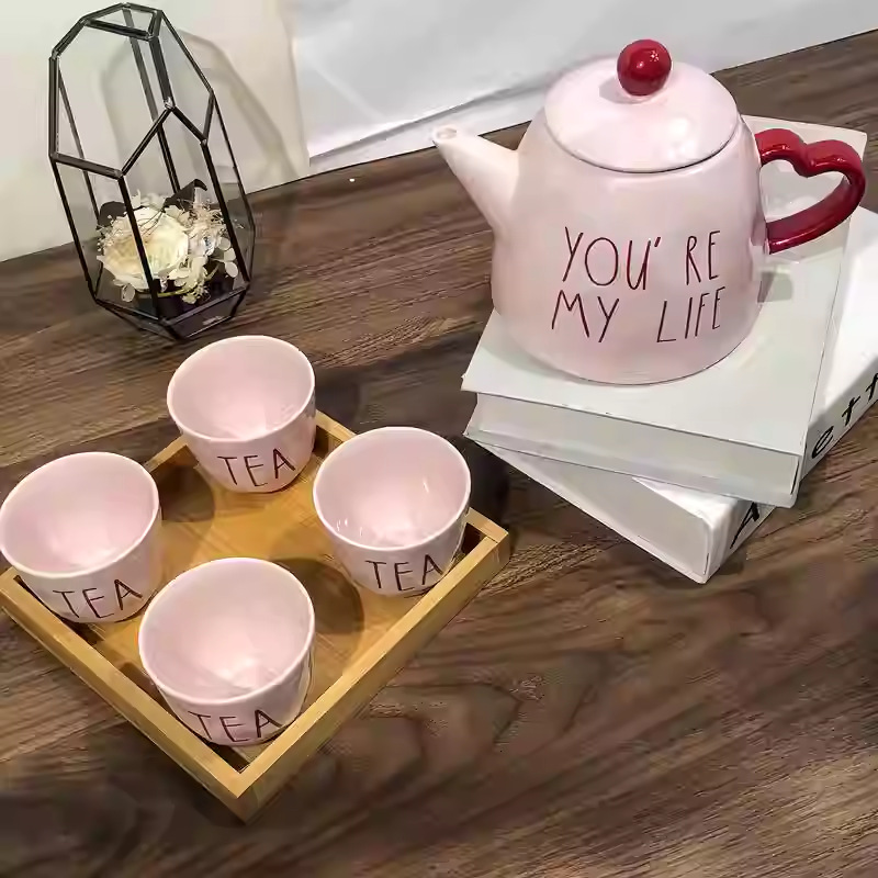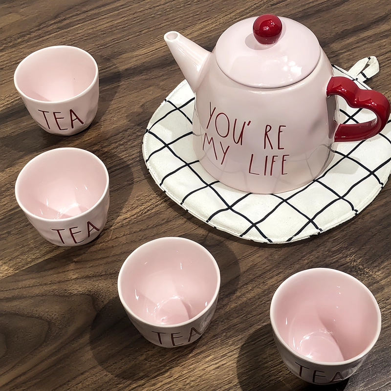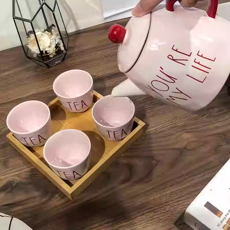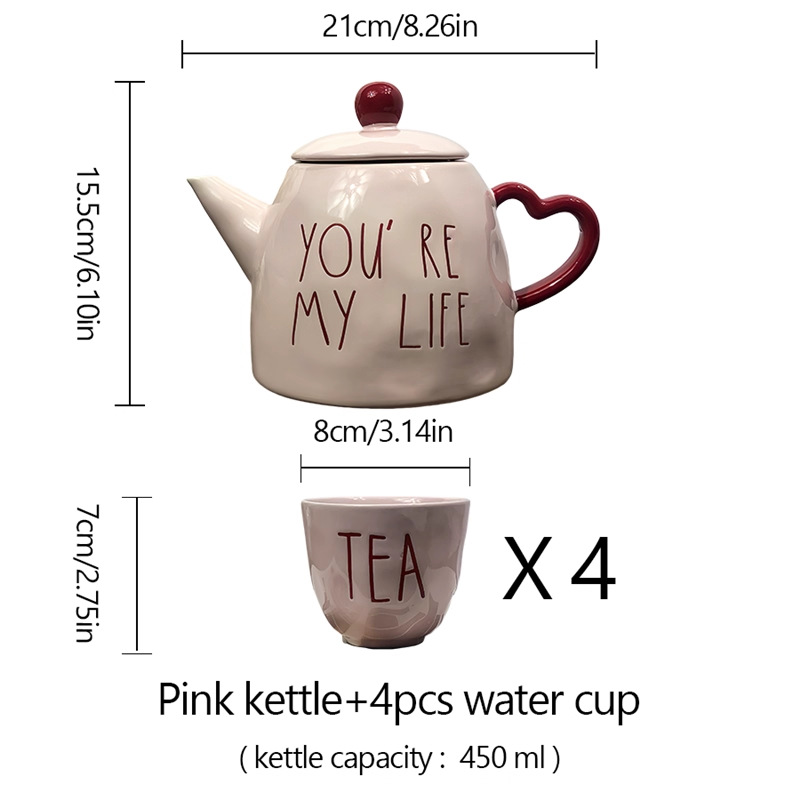 pink english teapot +4 teacups