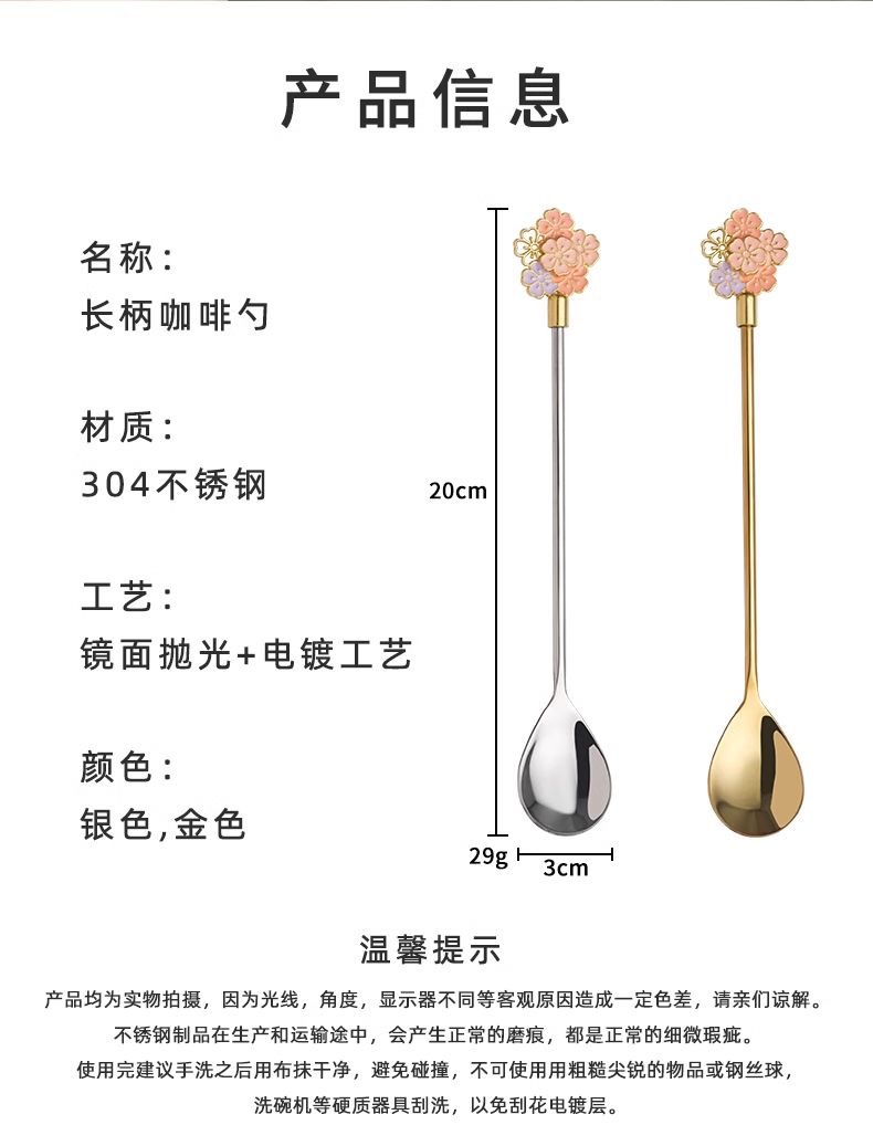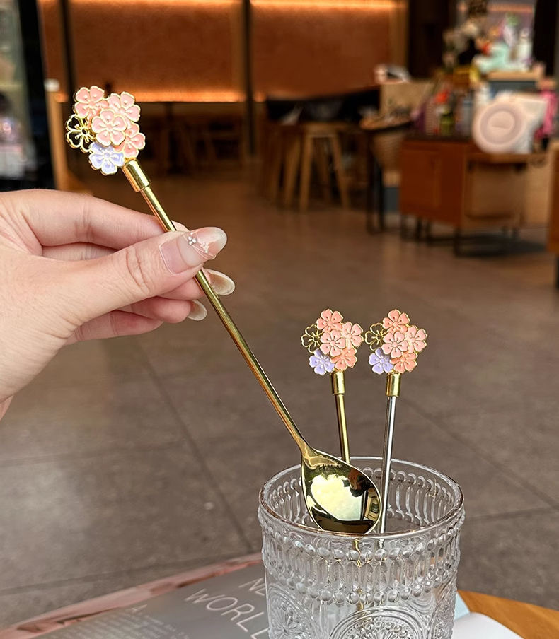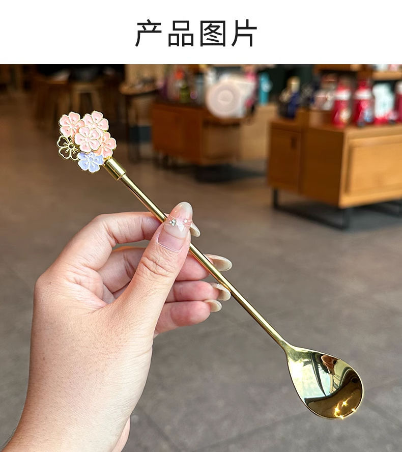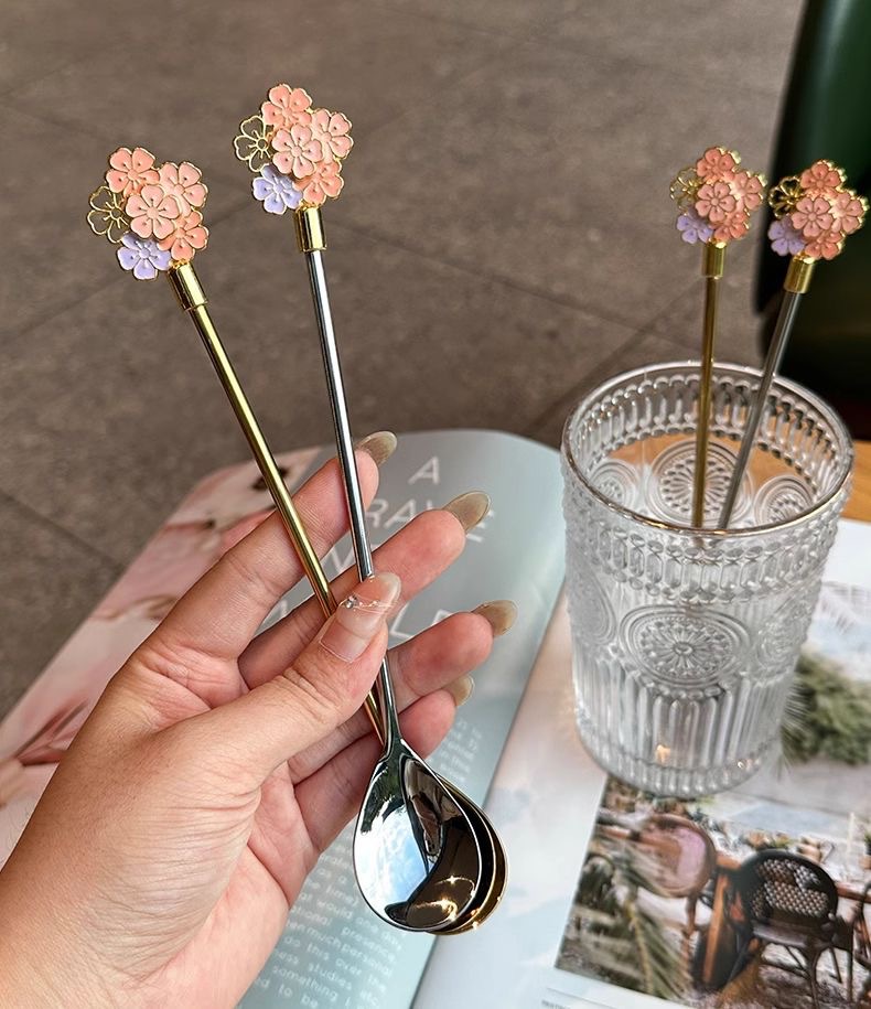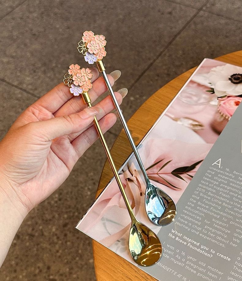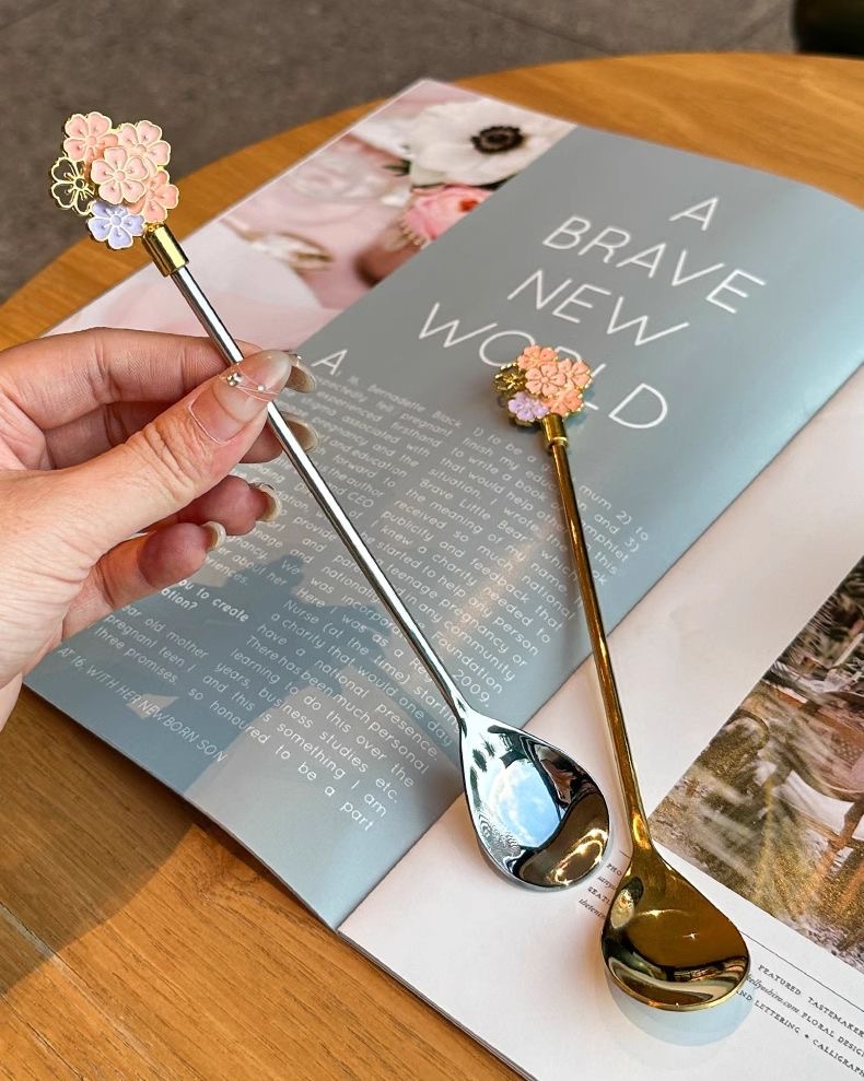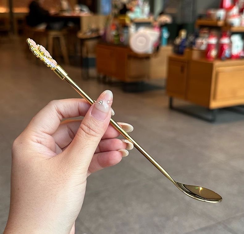 golden long flower spoon