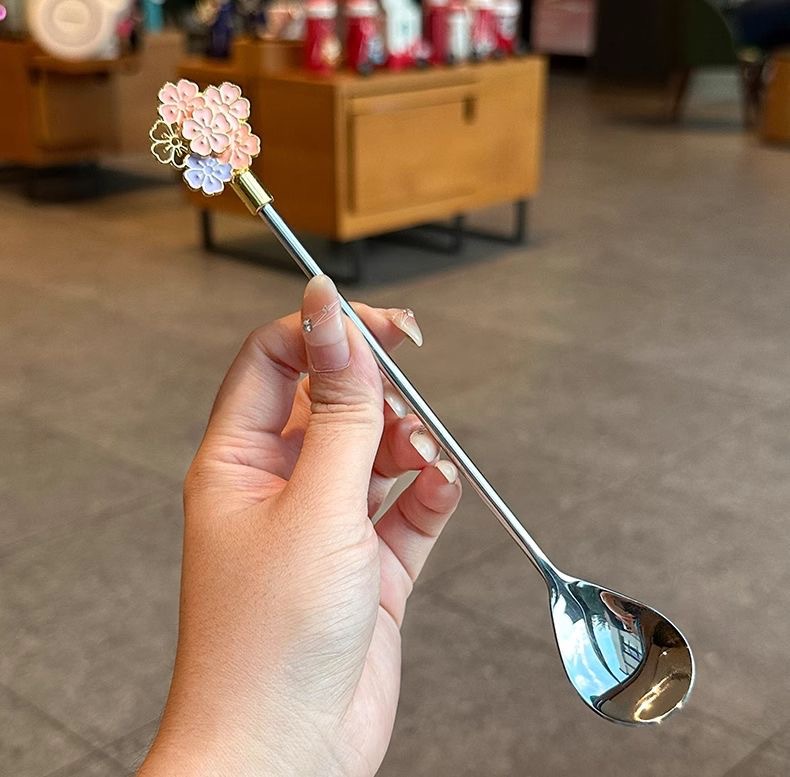 silver long flower spoon