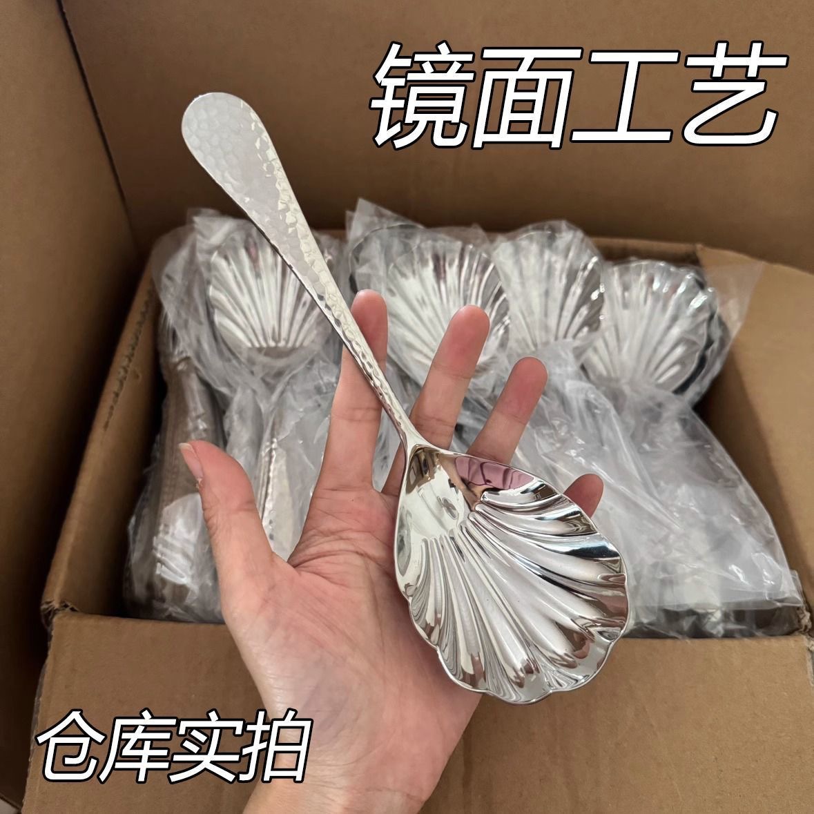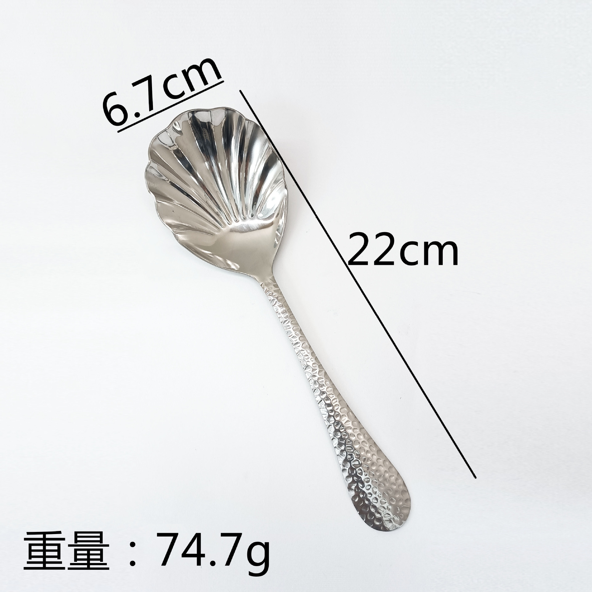 304 hammered finish shell spoon, silver (1 piece)