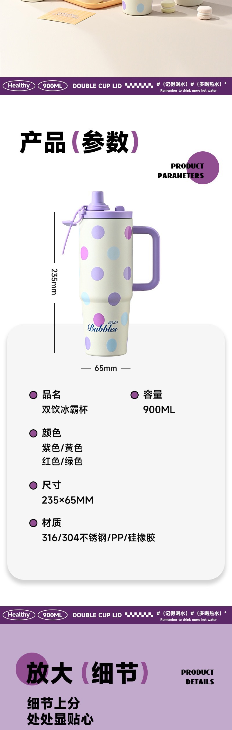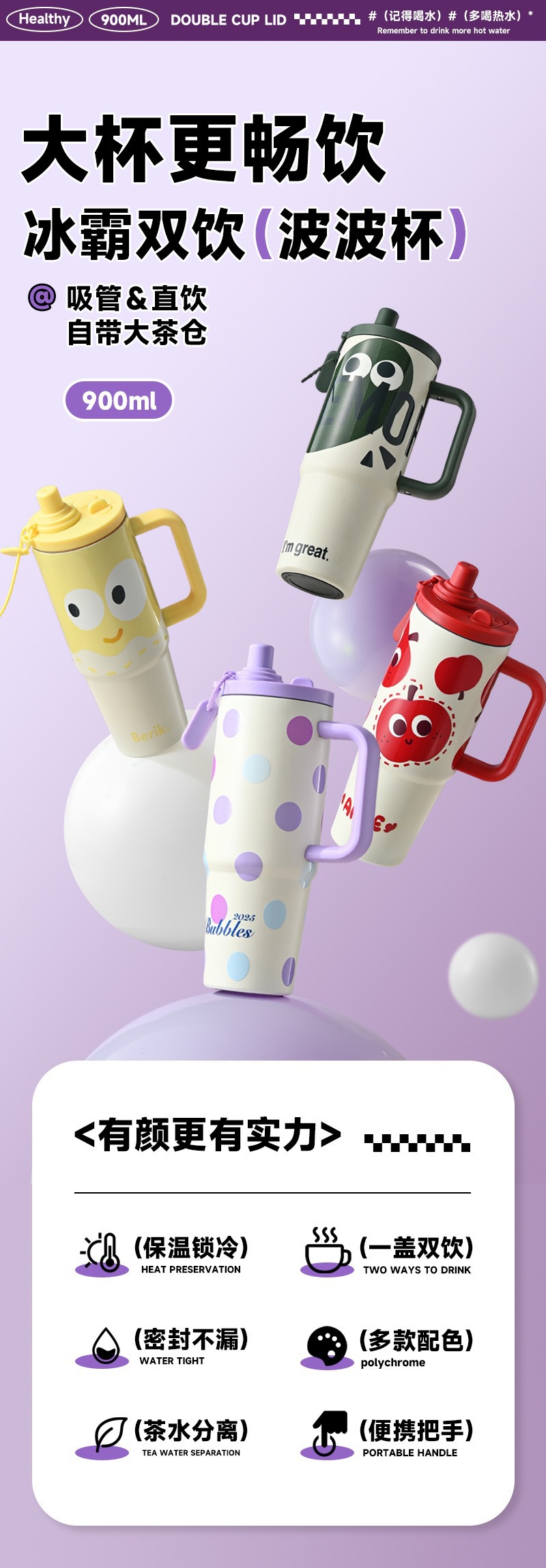 style: with handle, large capacity, cup, with straw