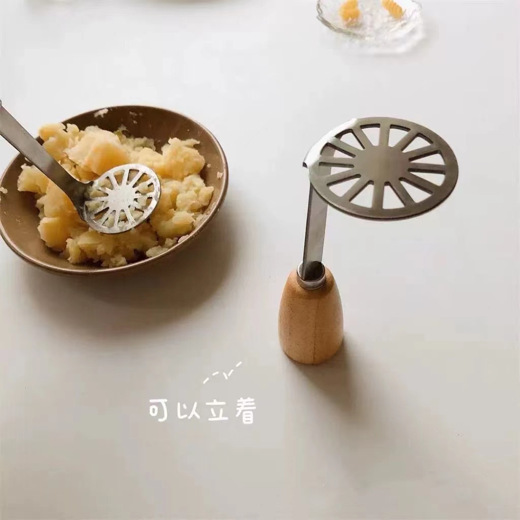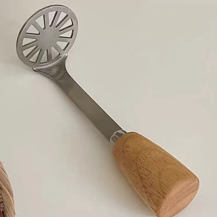 wooden-handled mashing tool